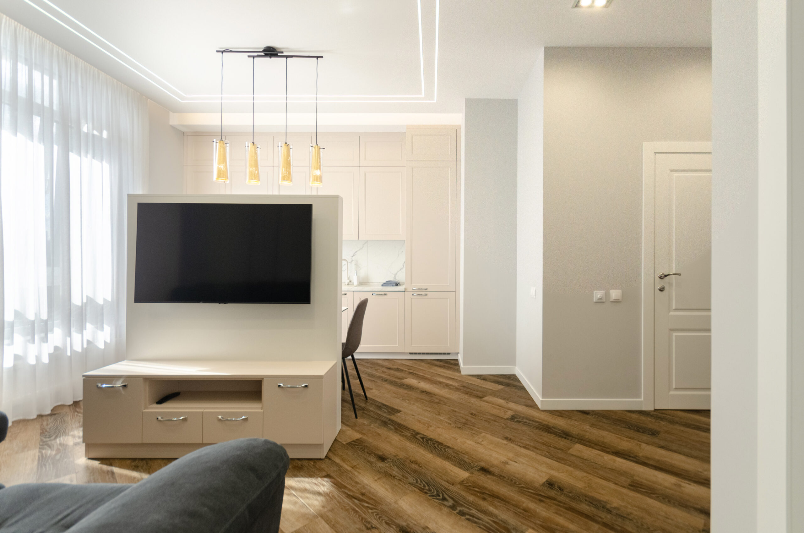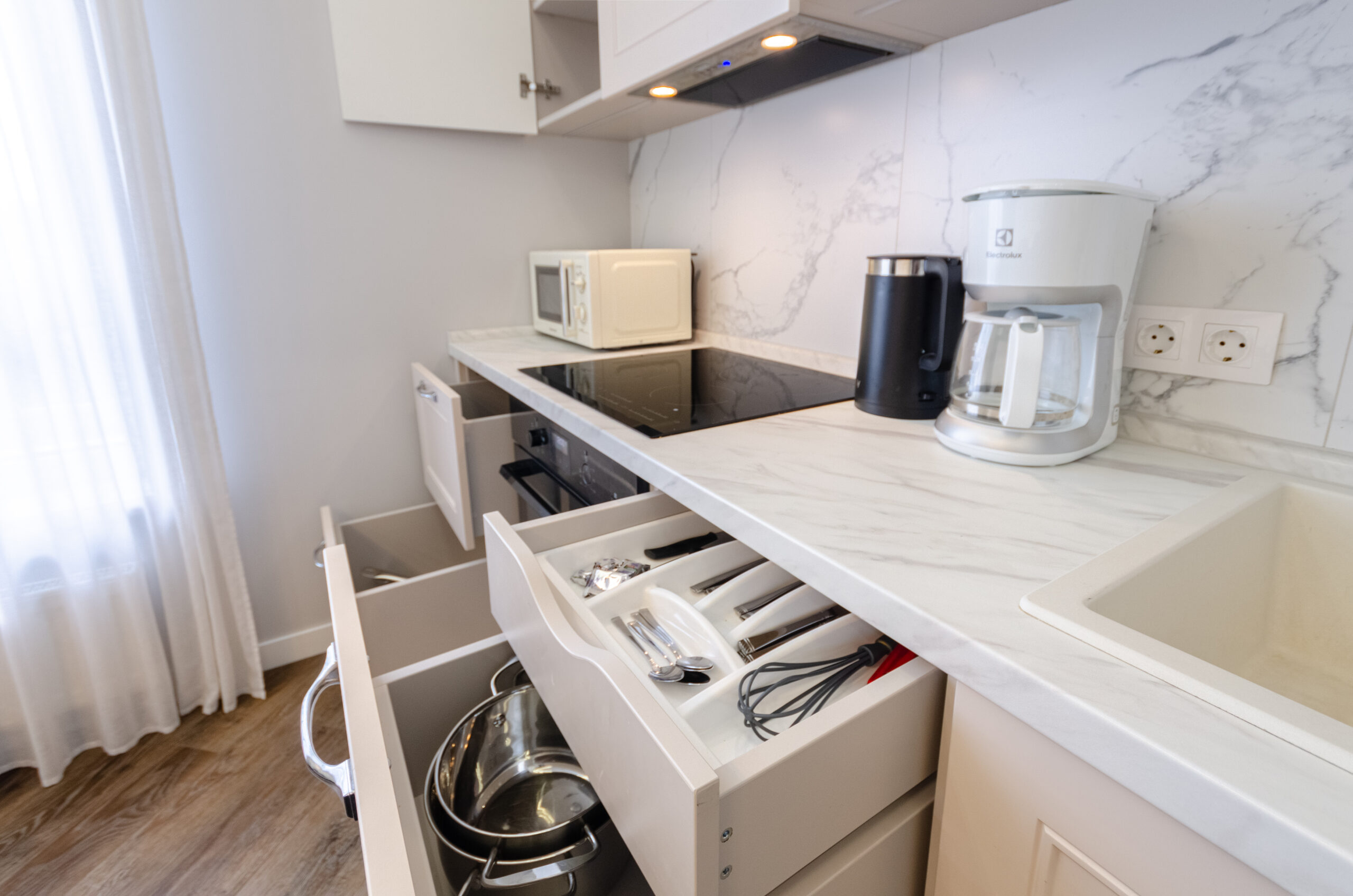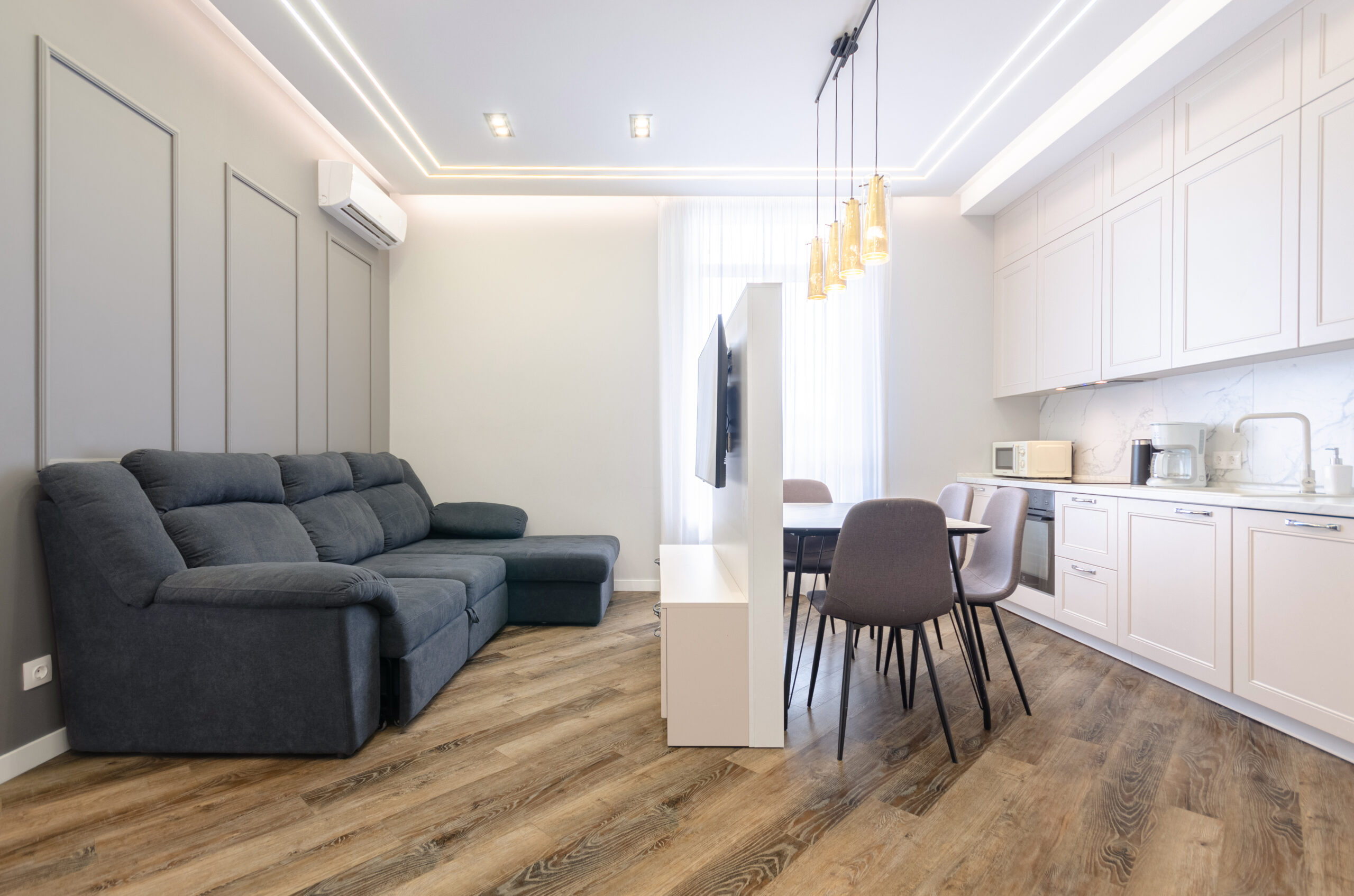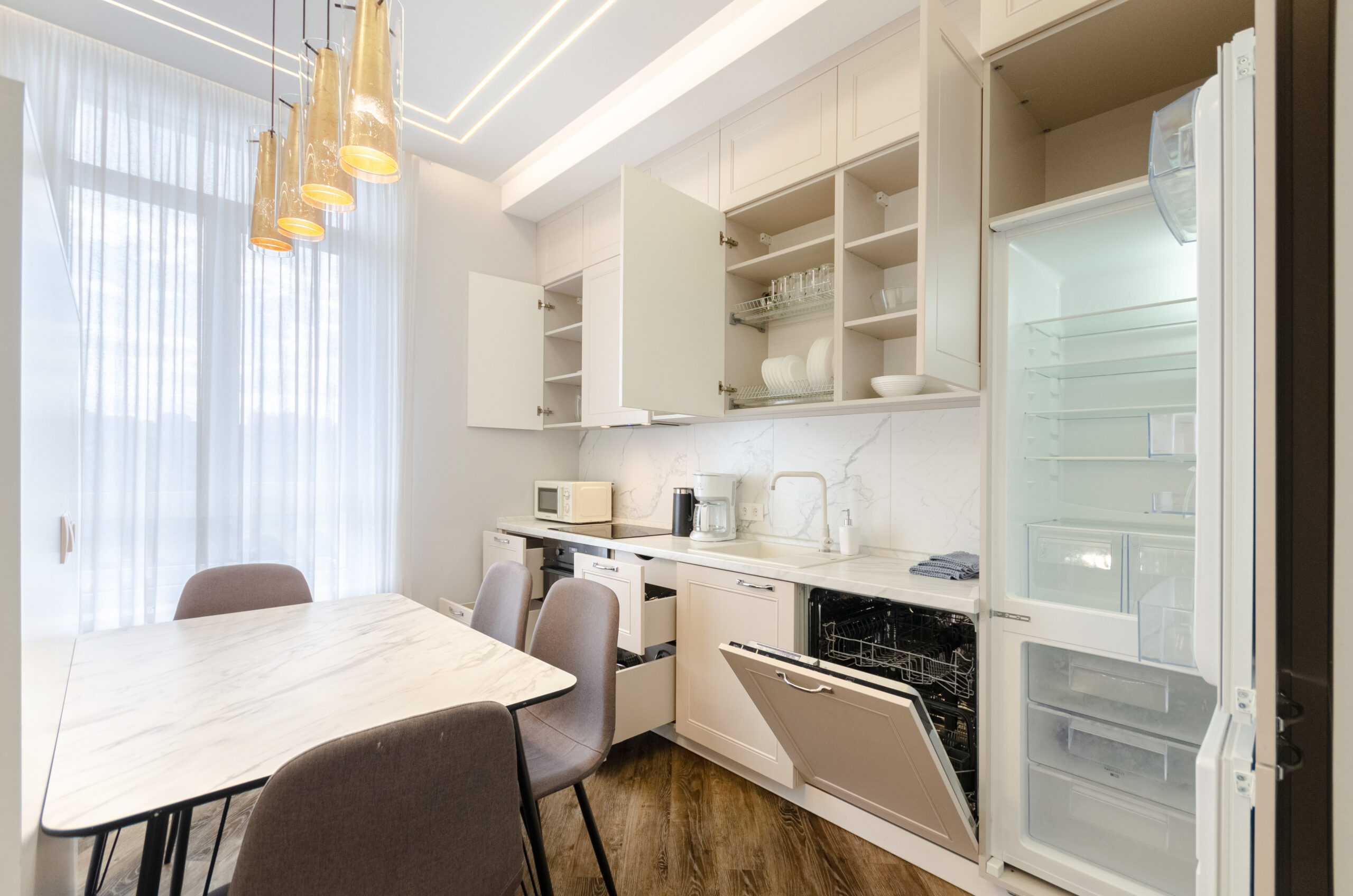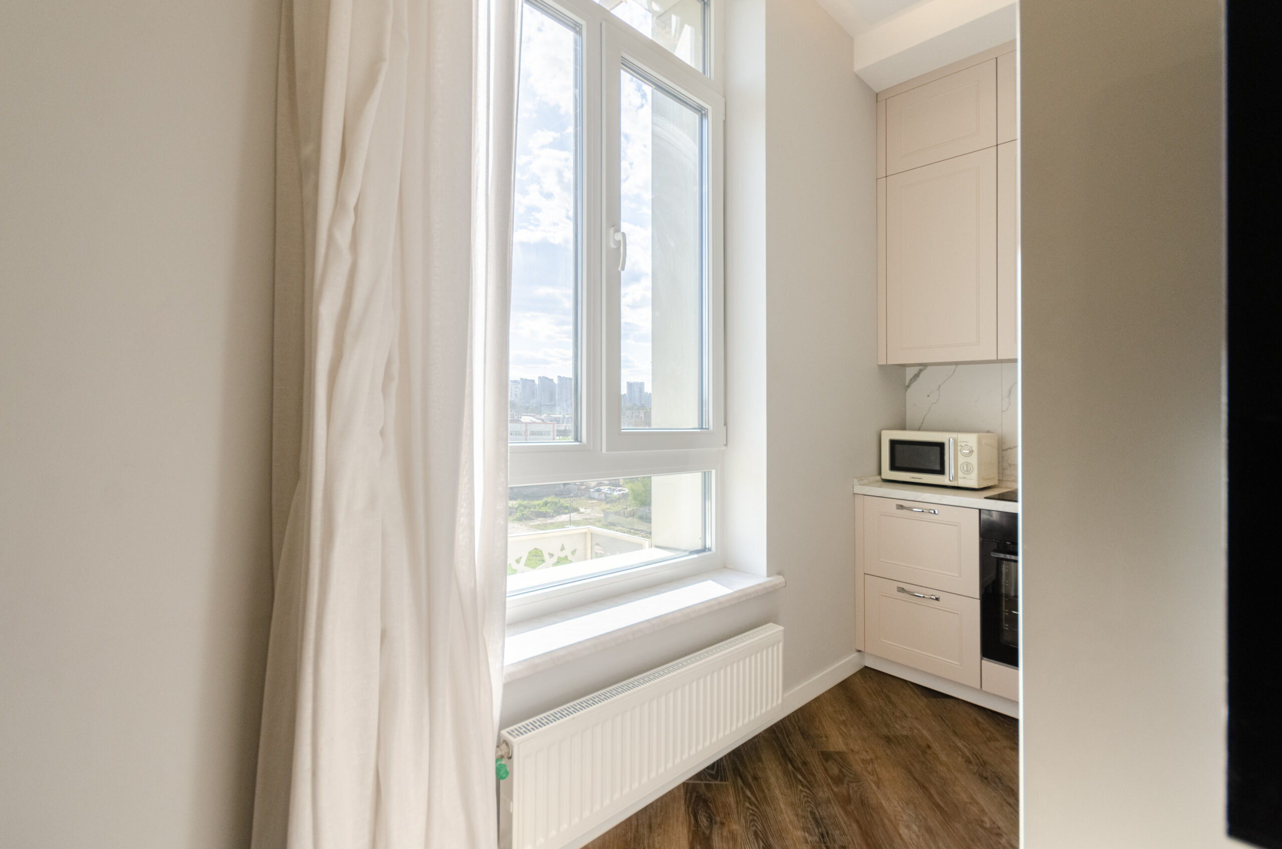 The apartment is fully equipped with everything necessary for a comfortable stay for any period.