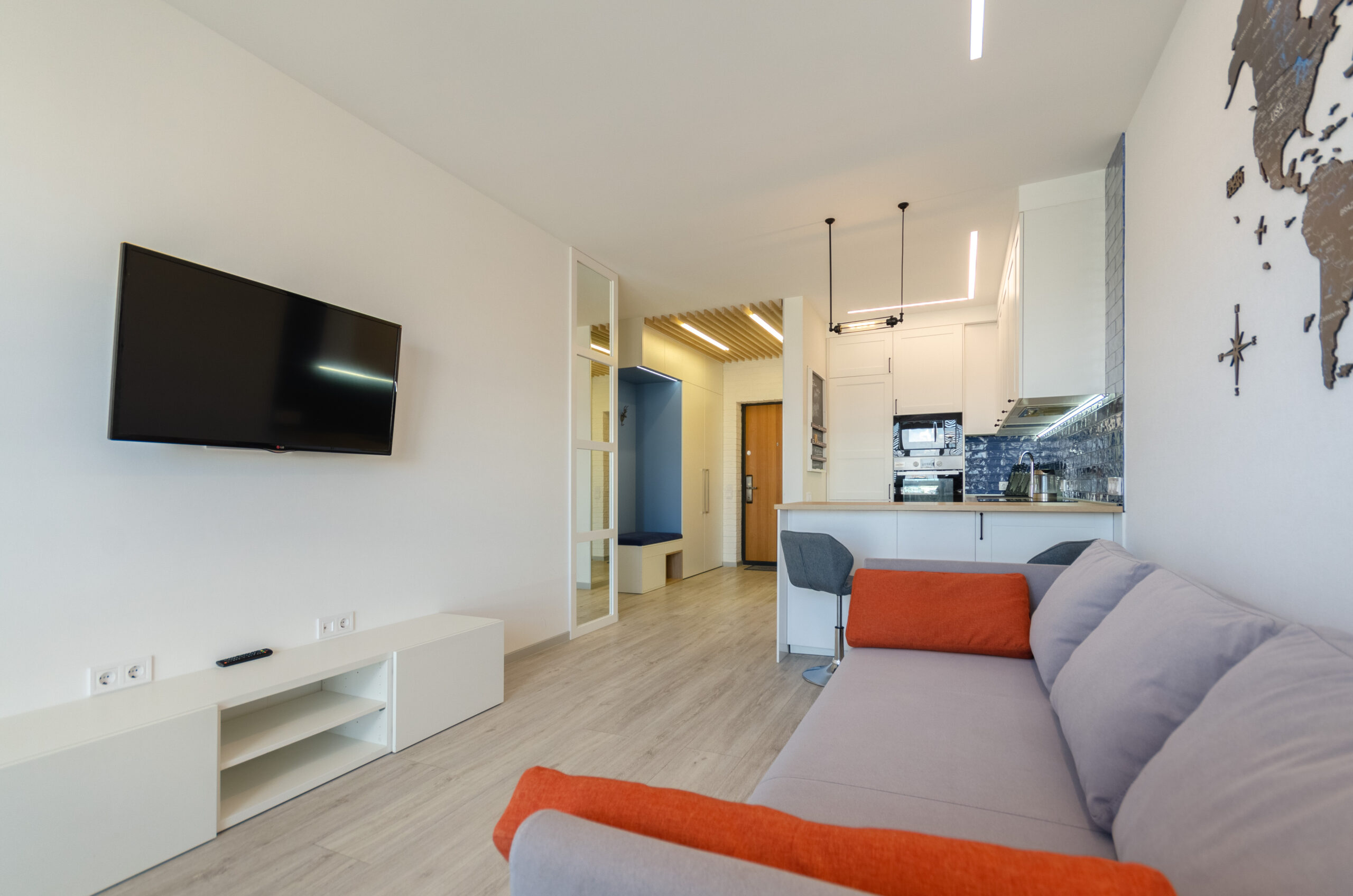 The apartment is located on the 16rd floor, has an area of 50 m2, has a living room with a kitchen, a separate bedroom, a bathroom.It is fully equipped with everything necessary for a comfortable stay for any period.