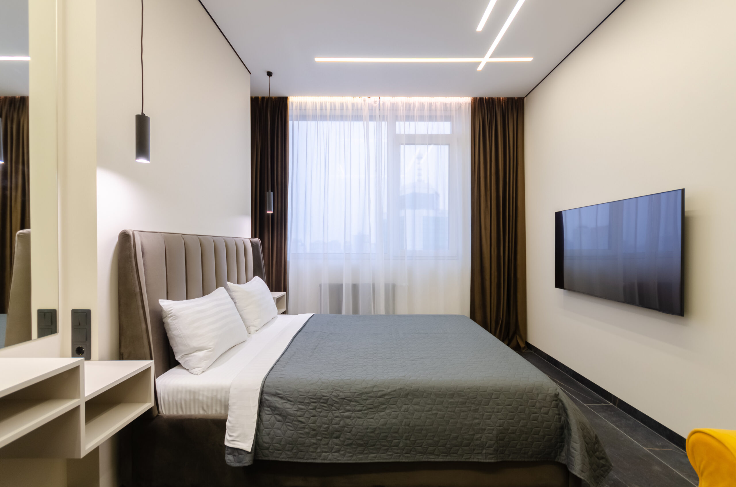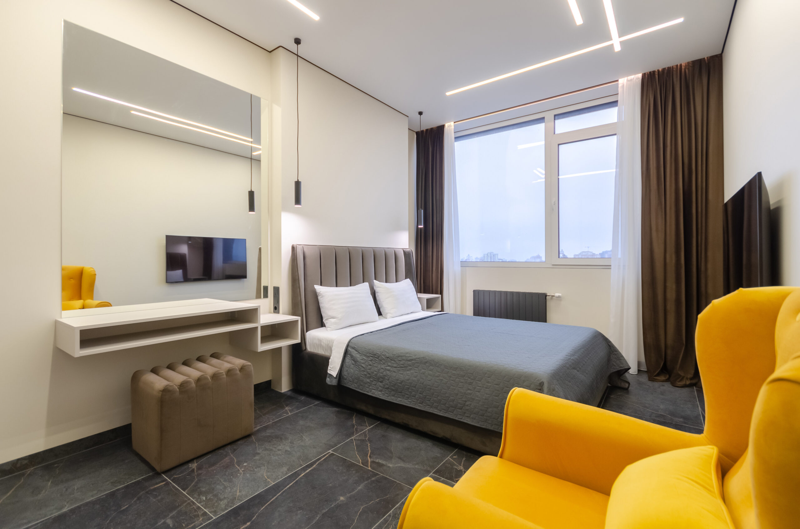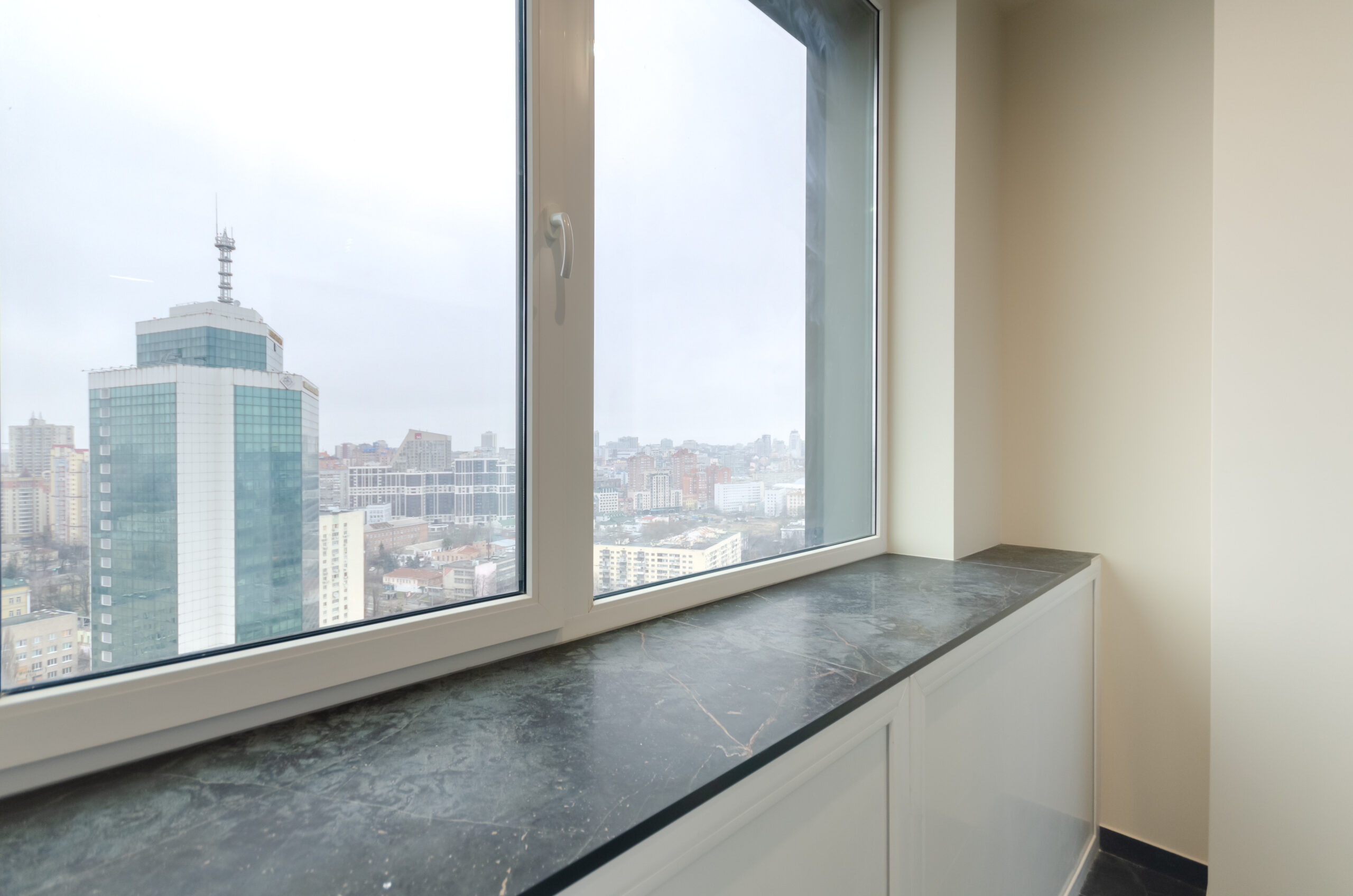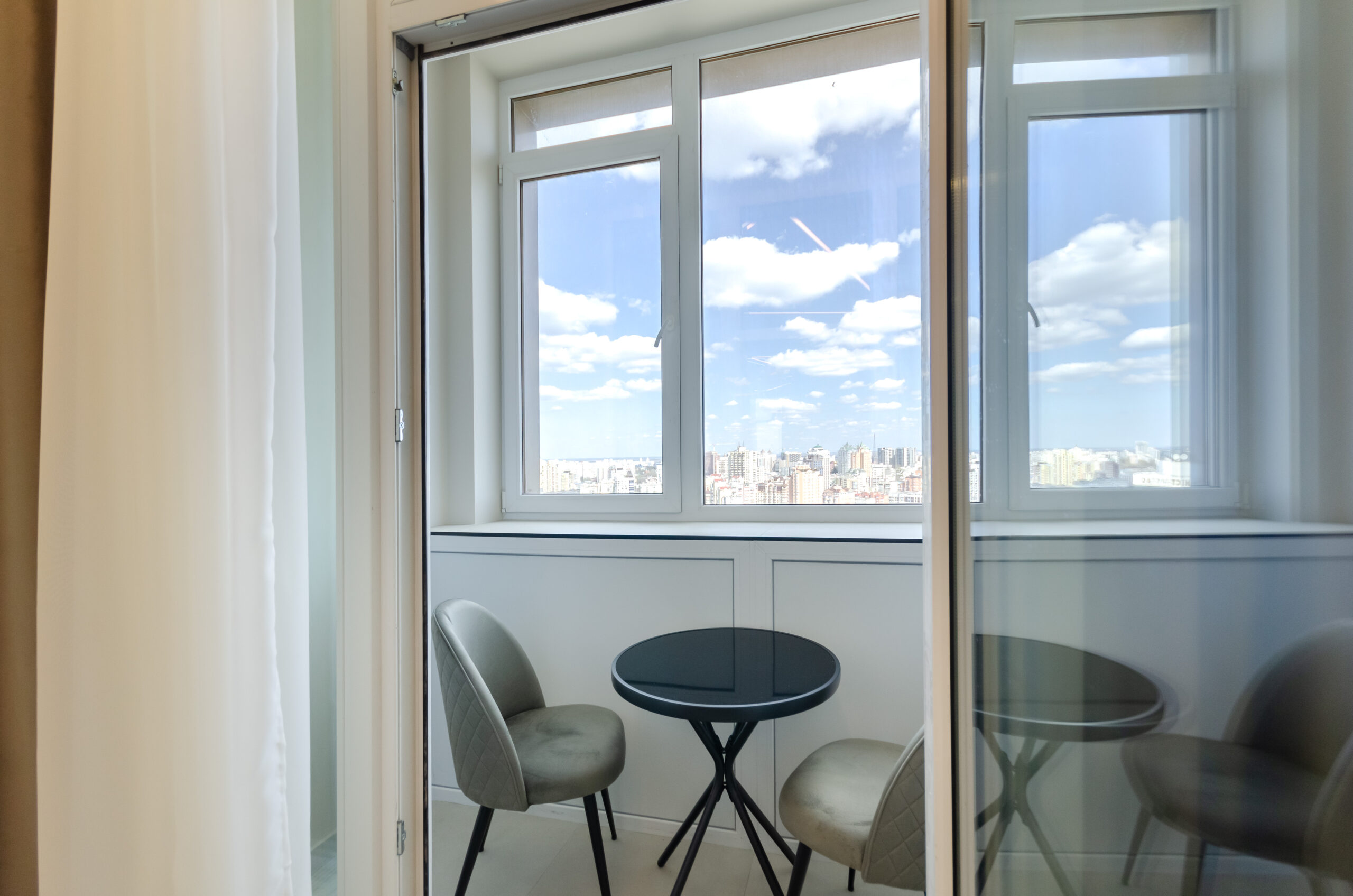 he apartment is located on the 35th floor with a panoramic view of Kyiv city.