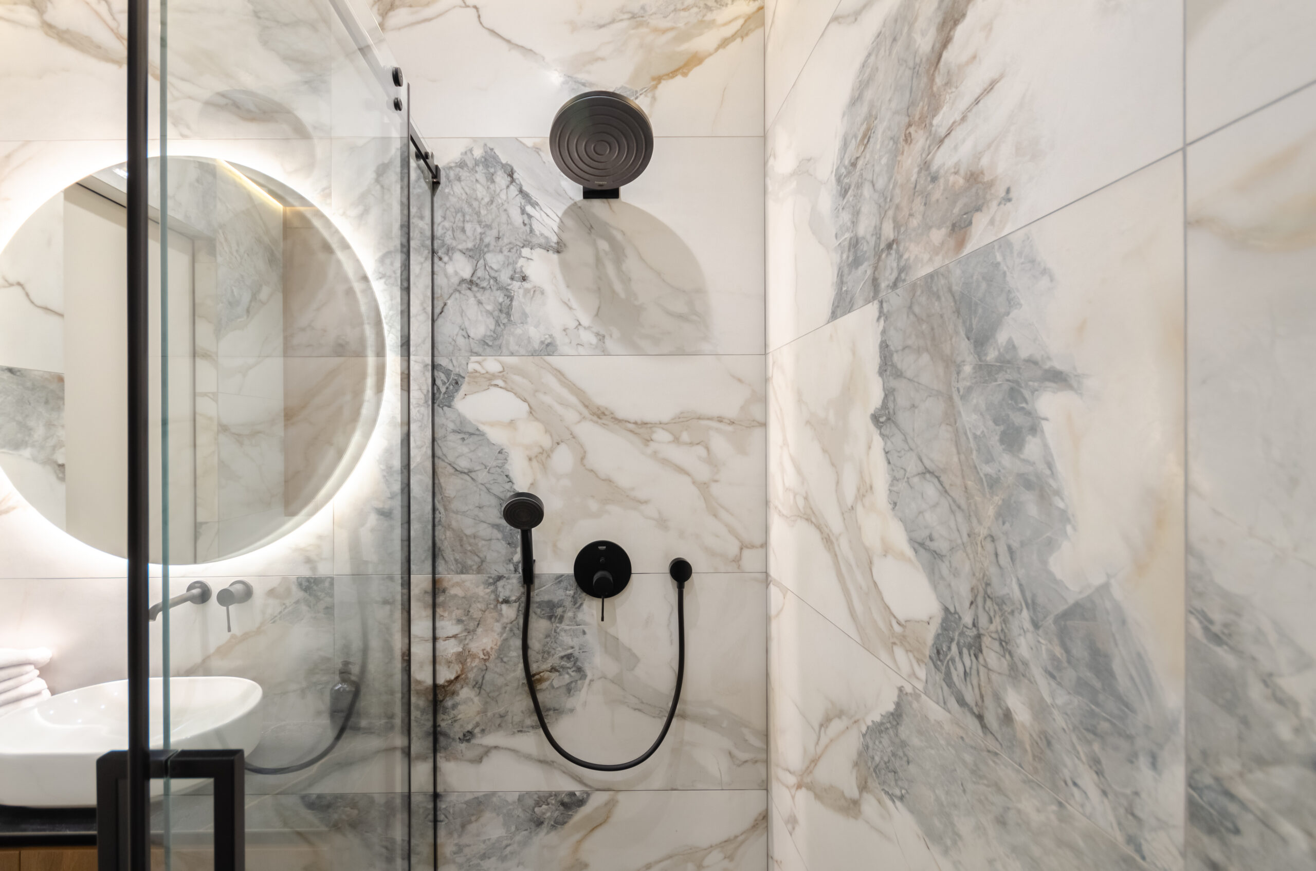 – bathroom with bath and shower