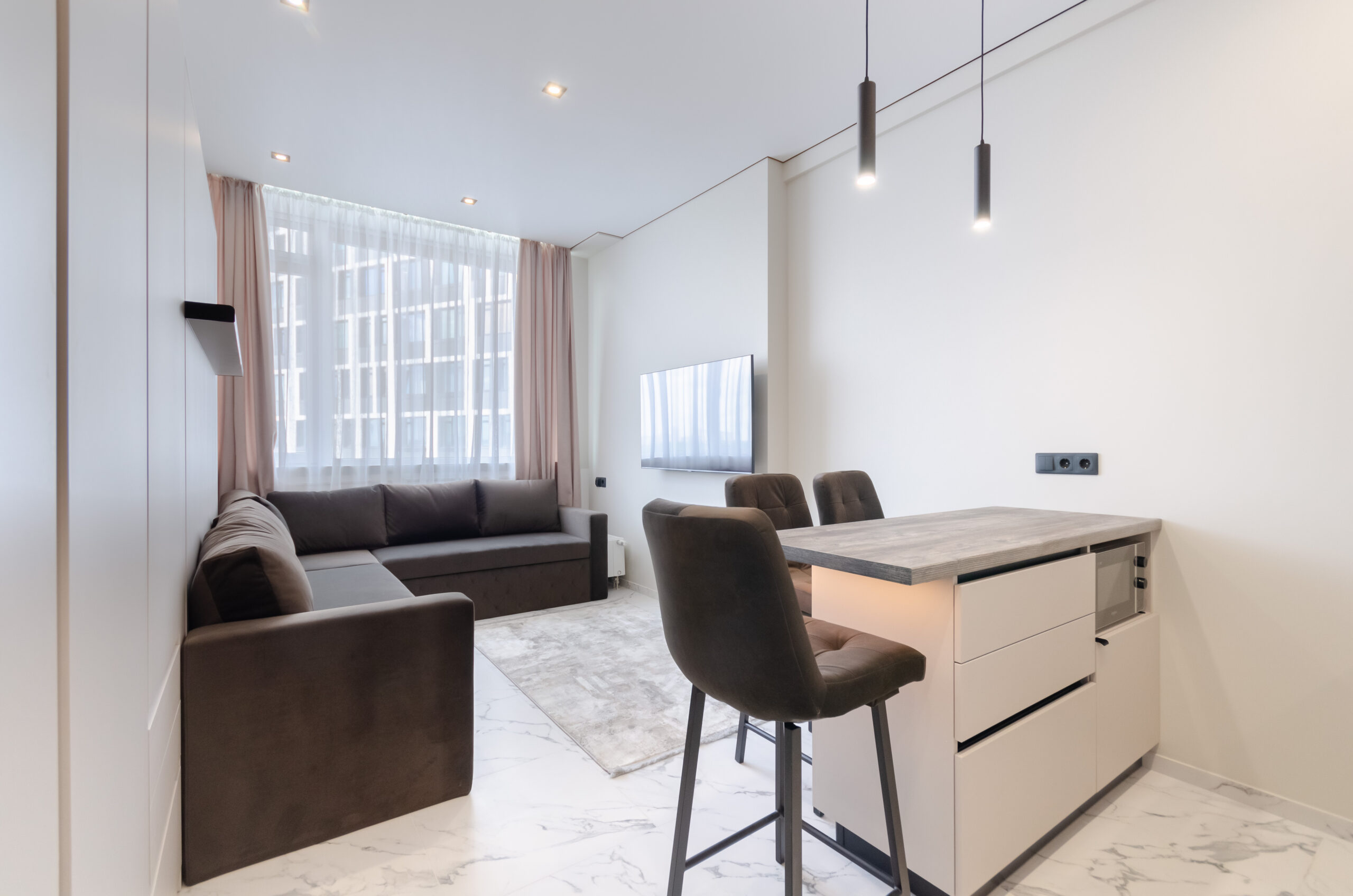 A new smart studio apartment is located in a beautiful new modern residential complex Manhattan City near city center.
