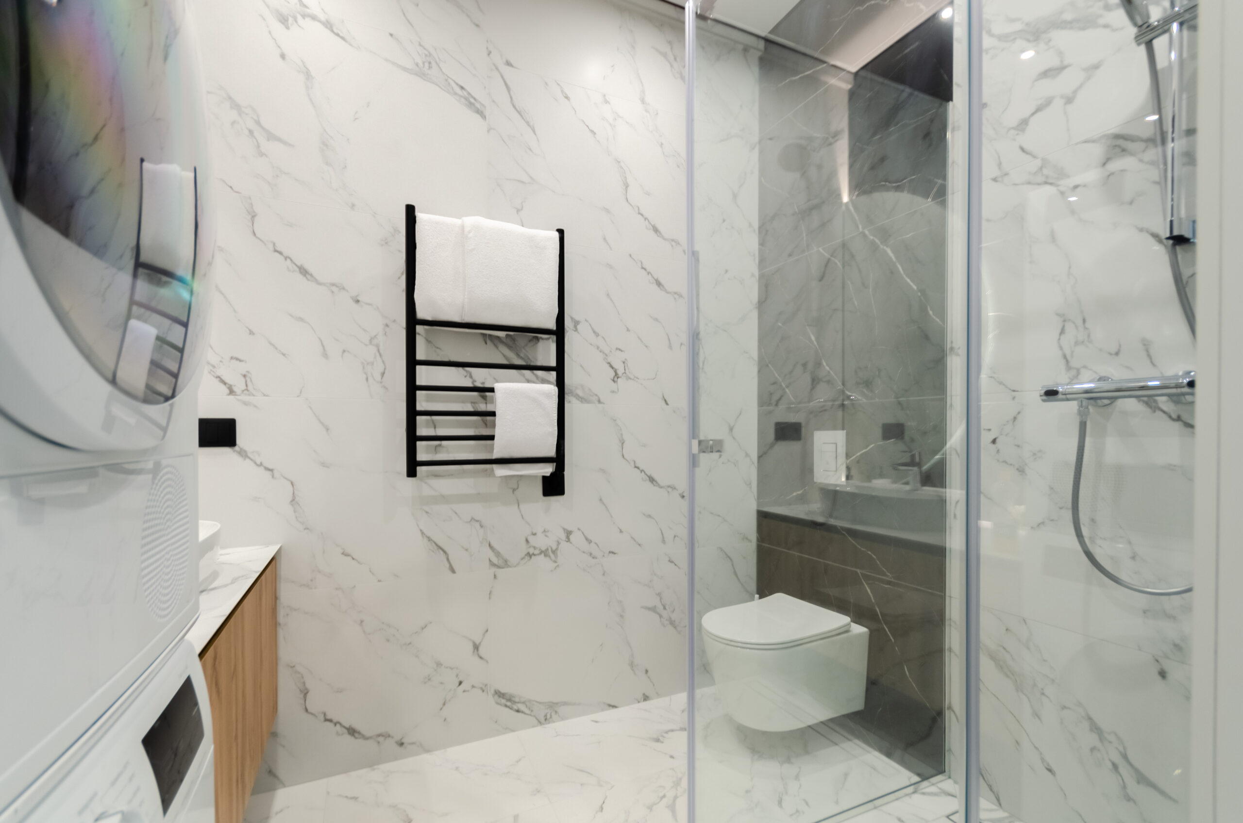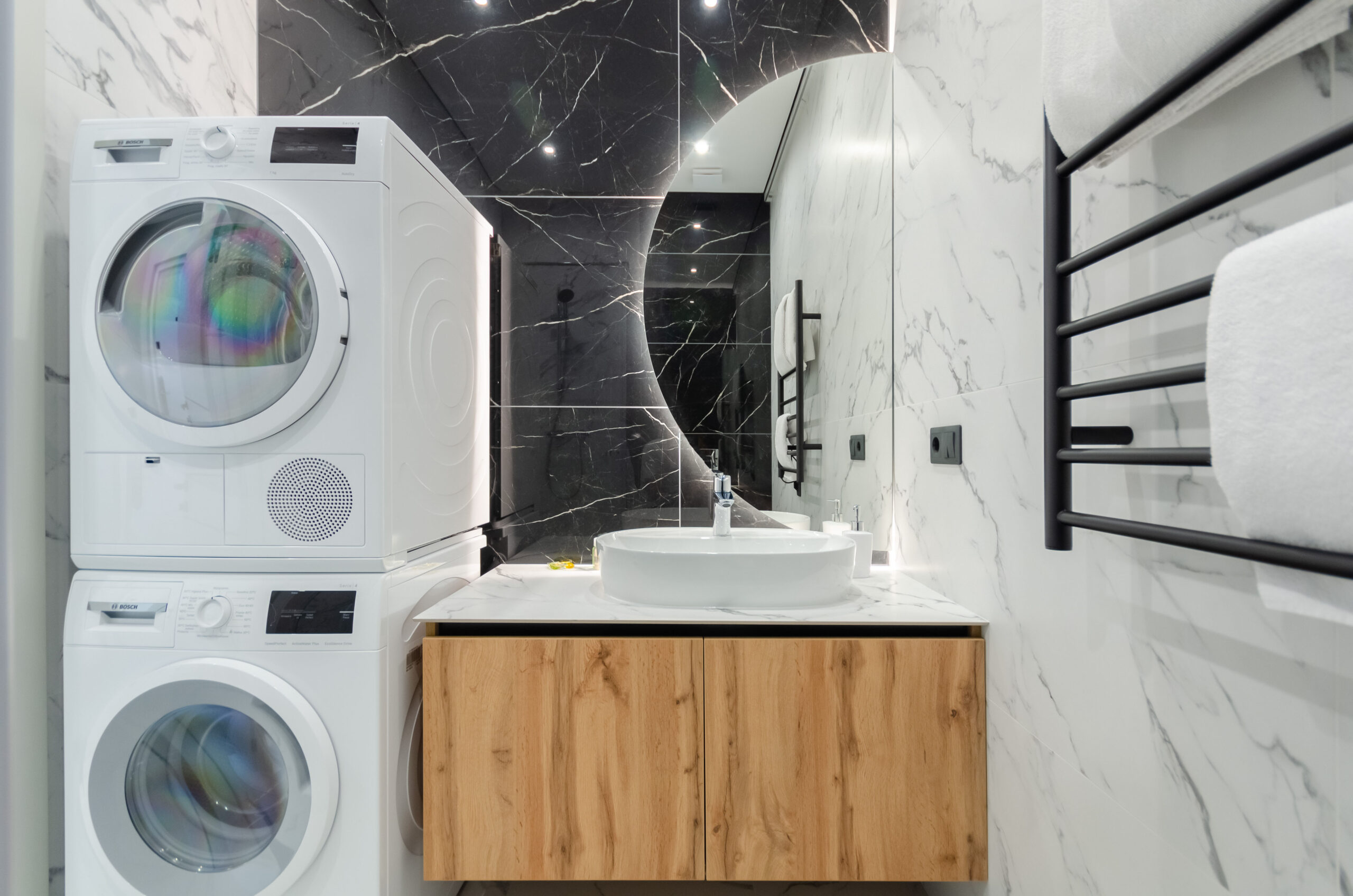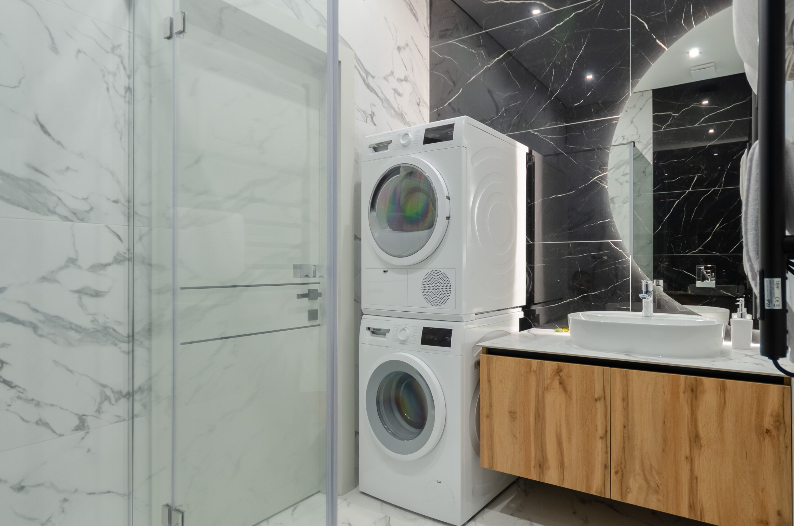 *bathroom: bath-shower, washing machine and dryer, toiletries, hairdryer, towels.