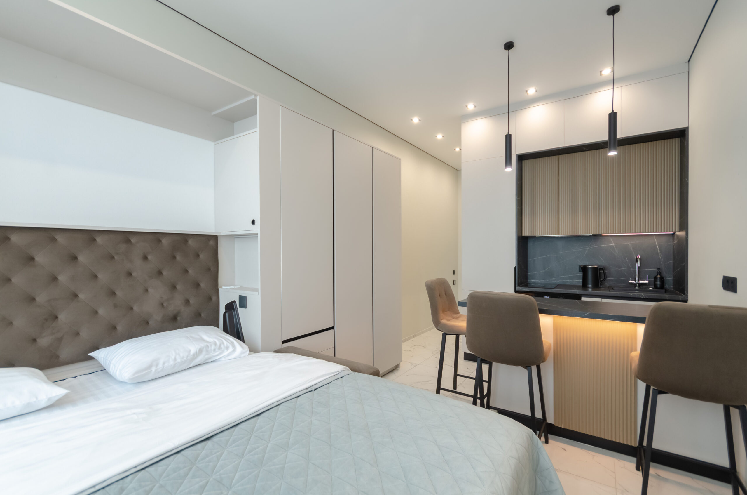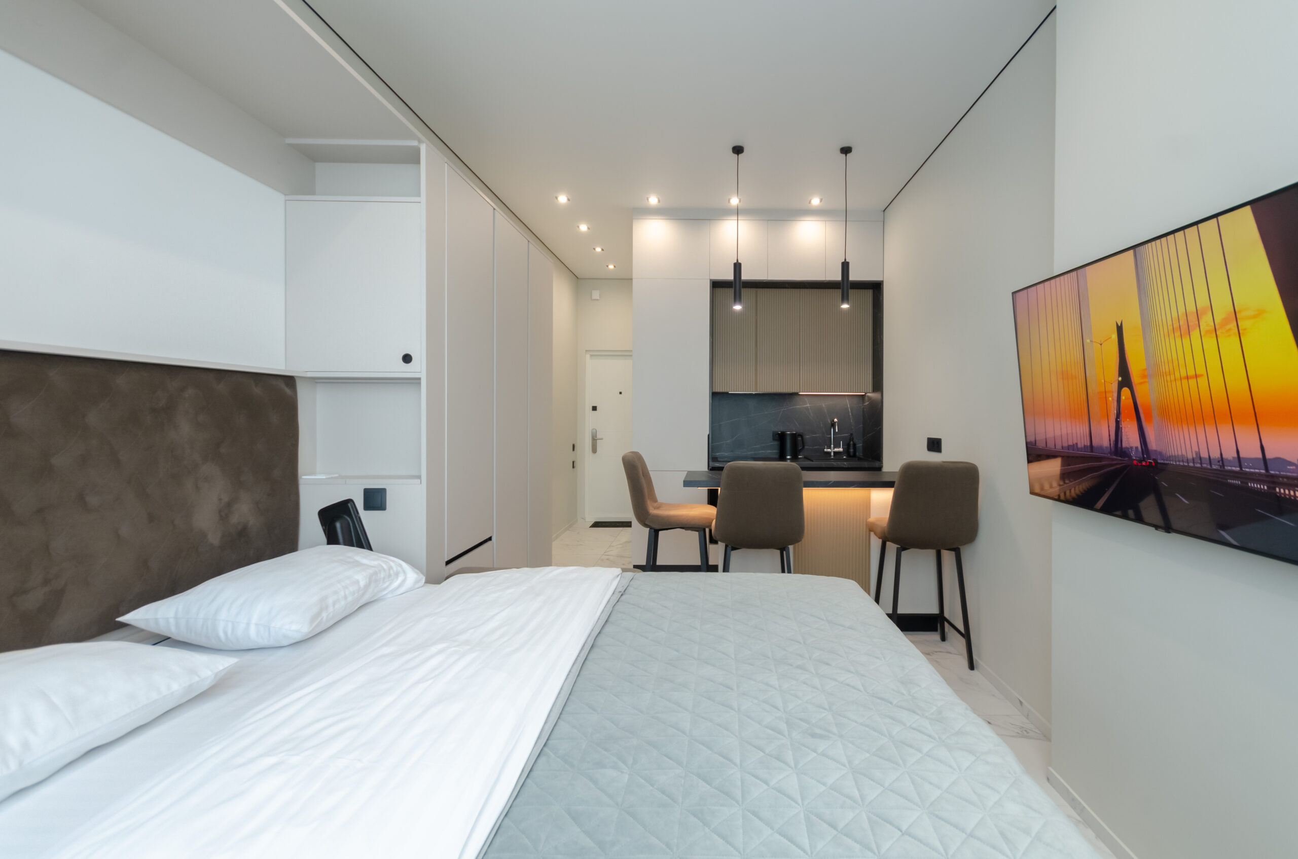 A new smart studio apartment is located in the modern residential complex Manhattan City, close to the city center.