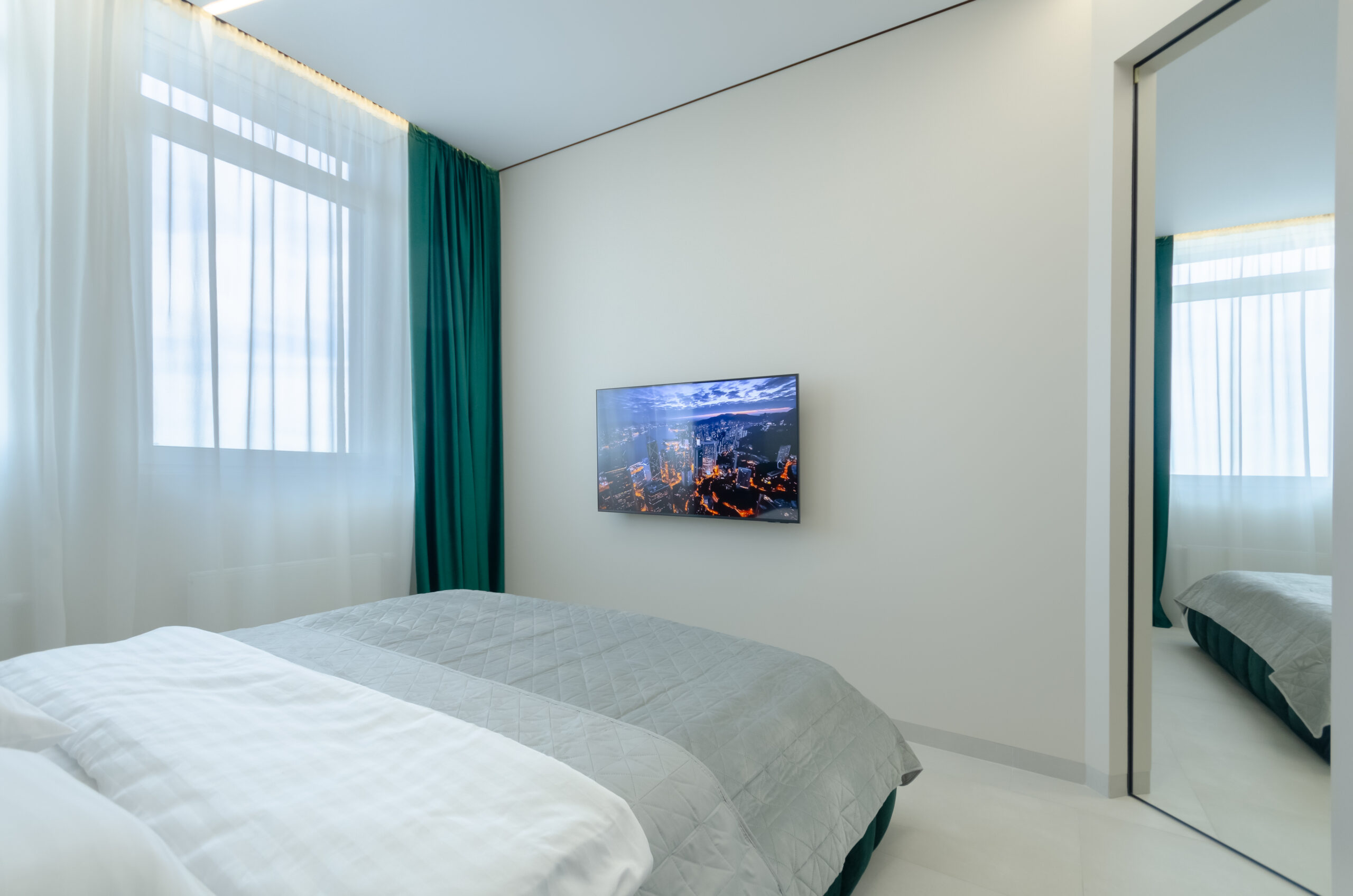 A new apartment with separate bedroom is located in a beautiful new modern residential complex Manhattan City near city center.