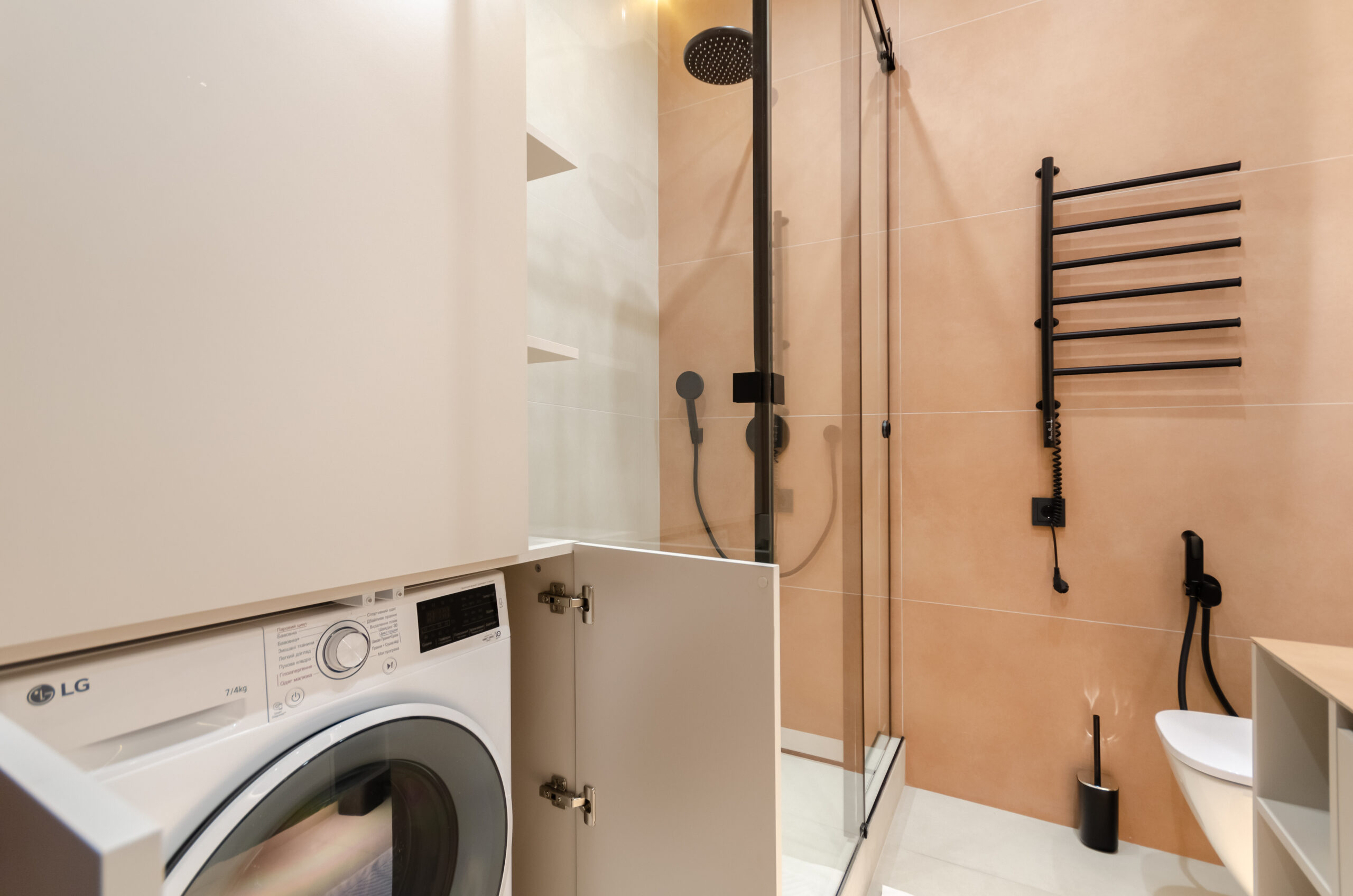 * bathroom: bath-shower, washing machine and dryer, toiletries, hairdryer, towels.