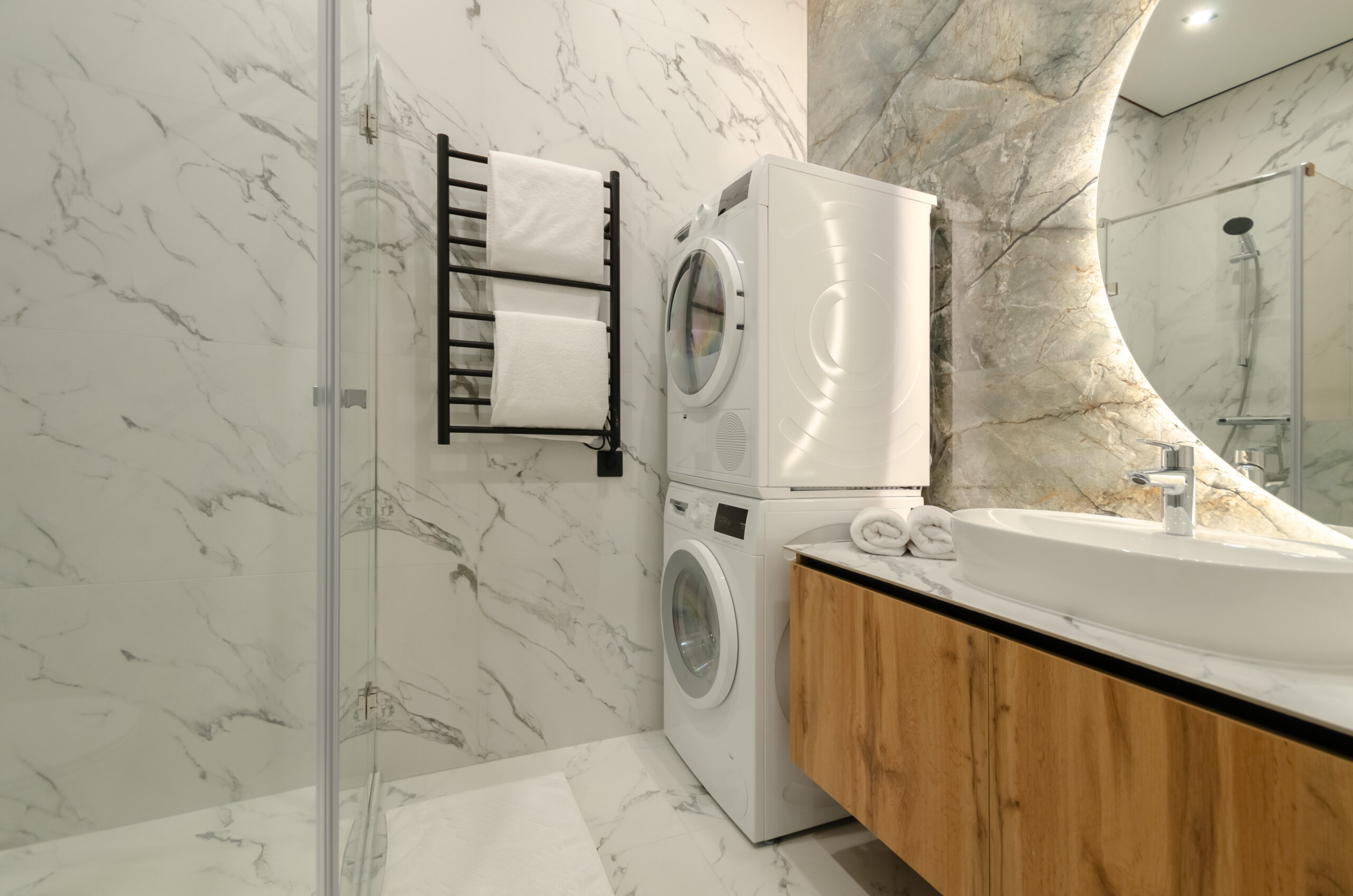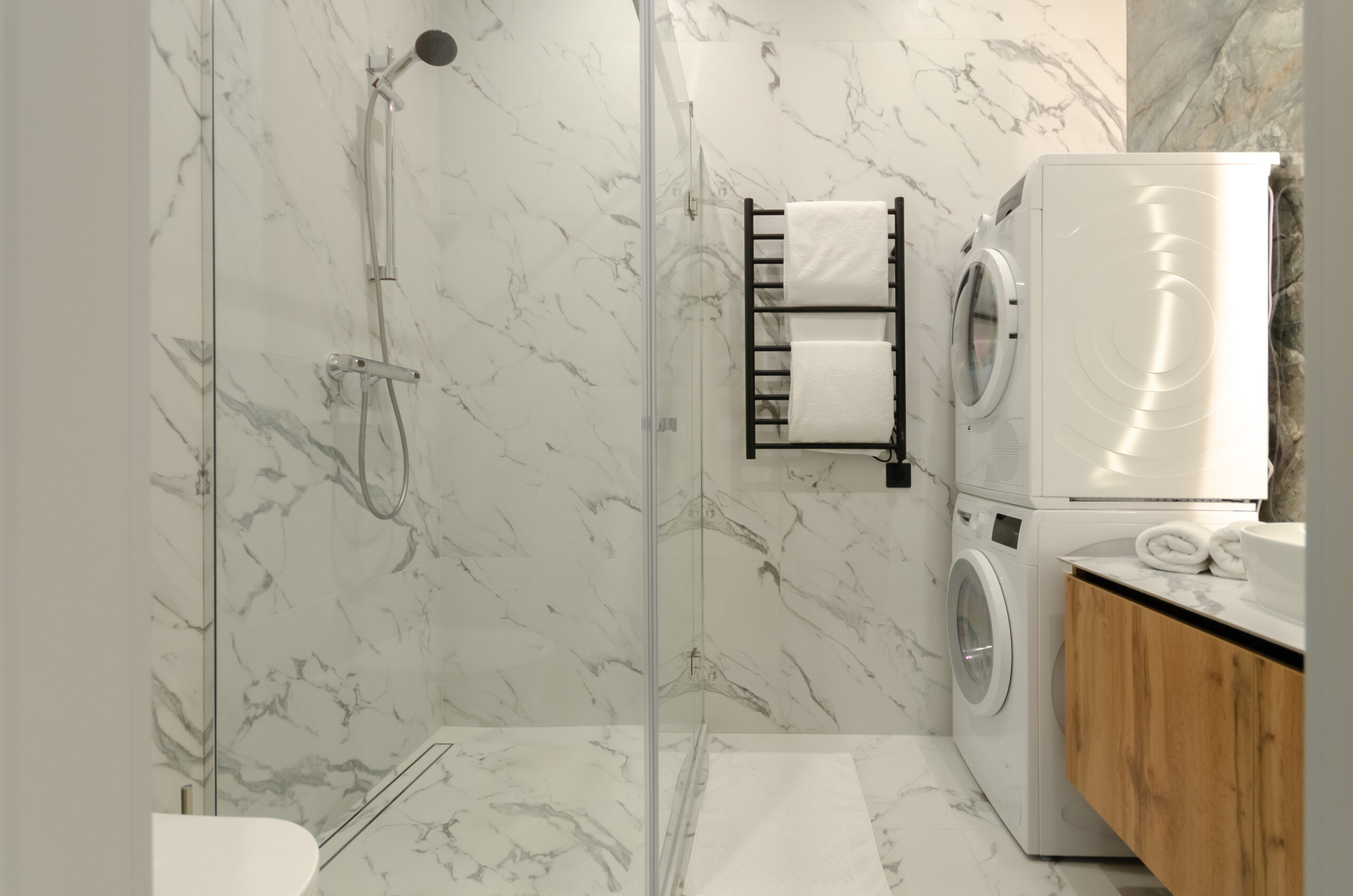 *bathroom: bath-shower, washing machine and dryer, toiletries, hairdryer, towels.