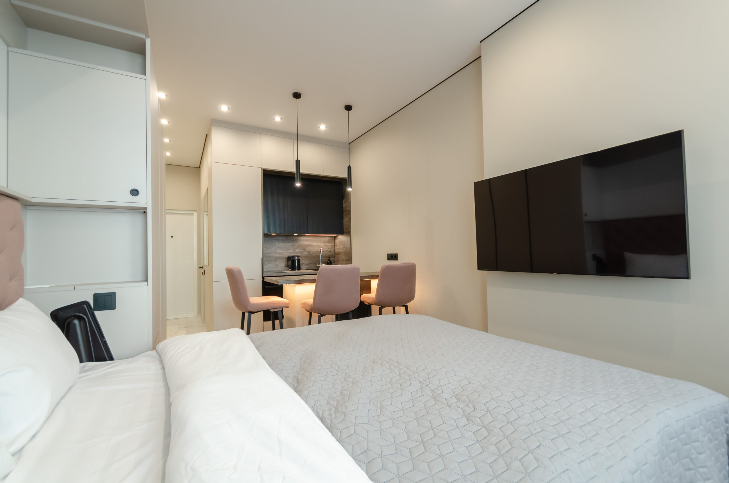 A new smart studio apartment is located in a beautiful new modern residential complex Manhattan City near city center.