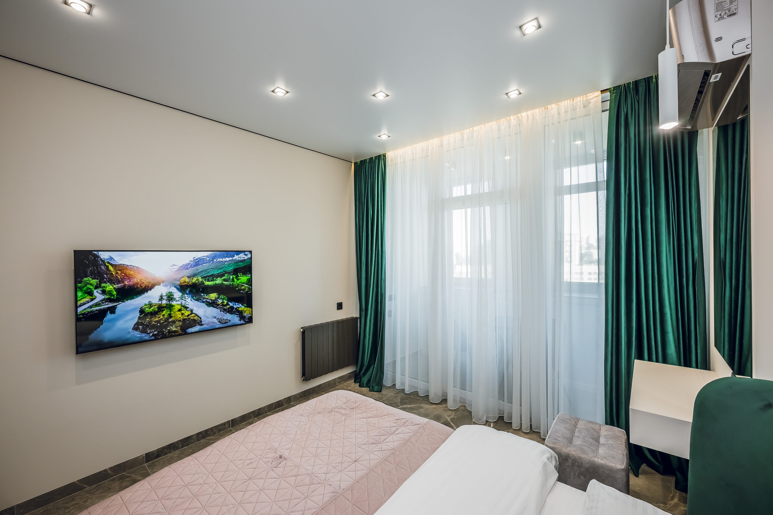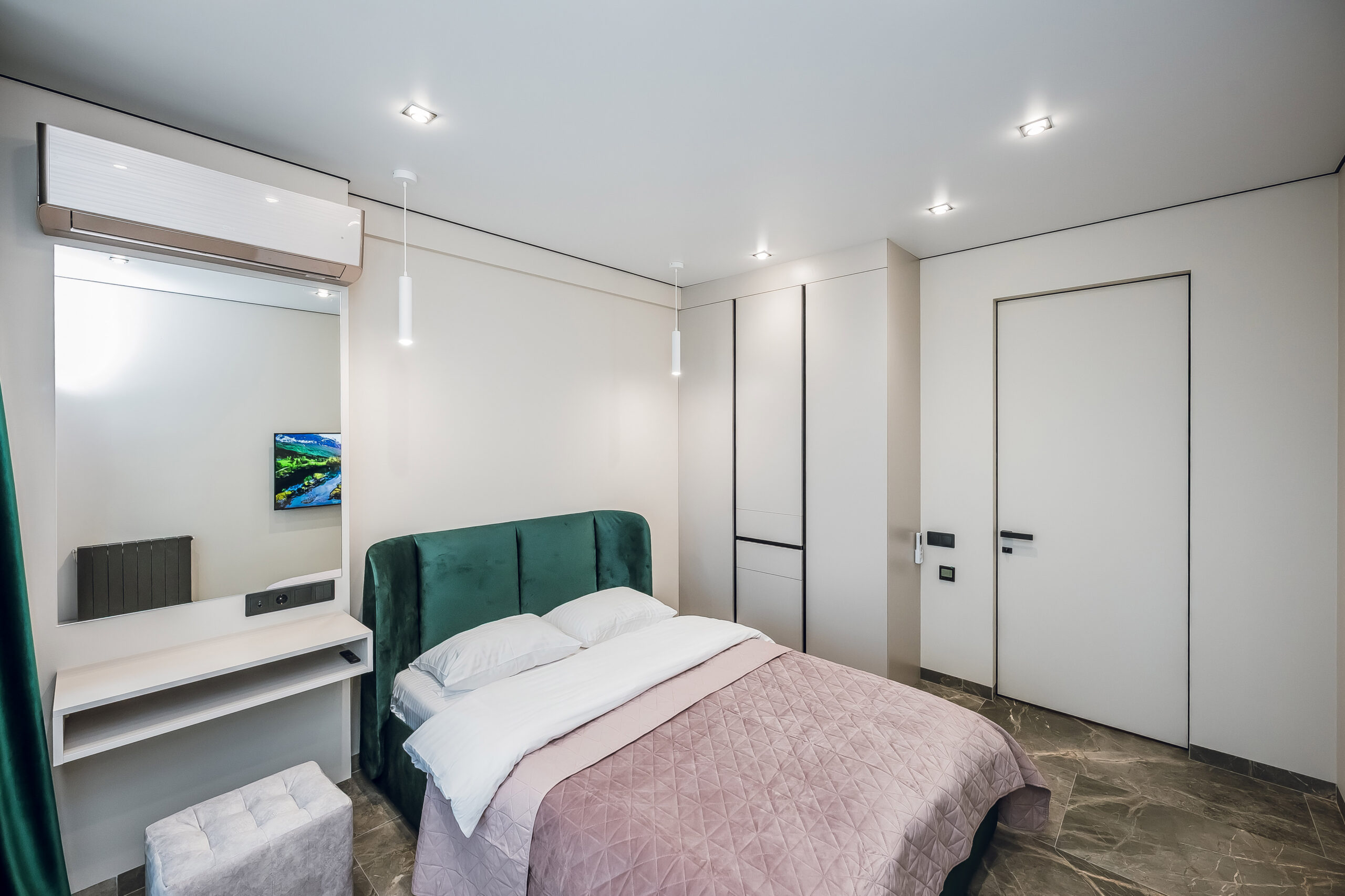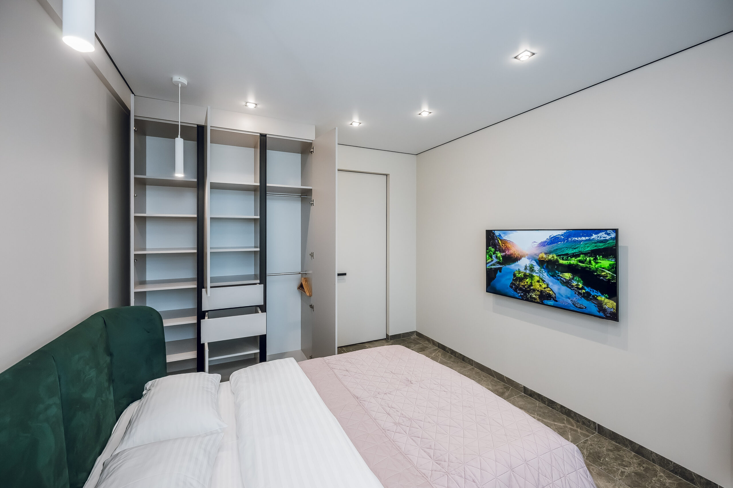 Спальня 2: зручне двоспальне ліжко (2000 × 1600 мм), кондиціонер, телевізор