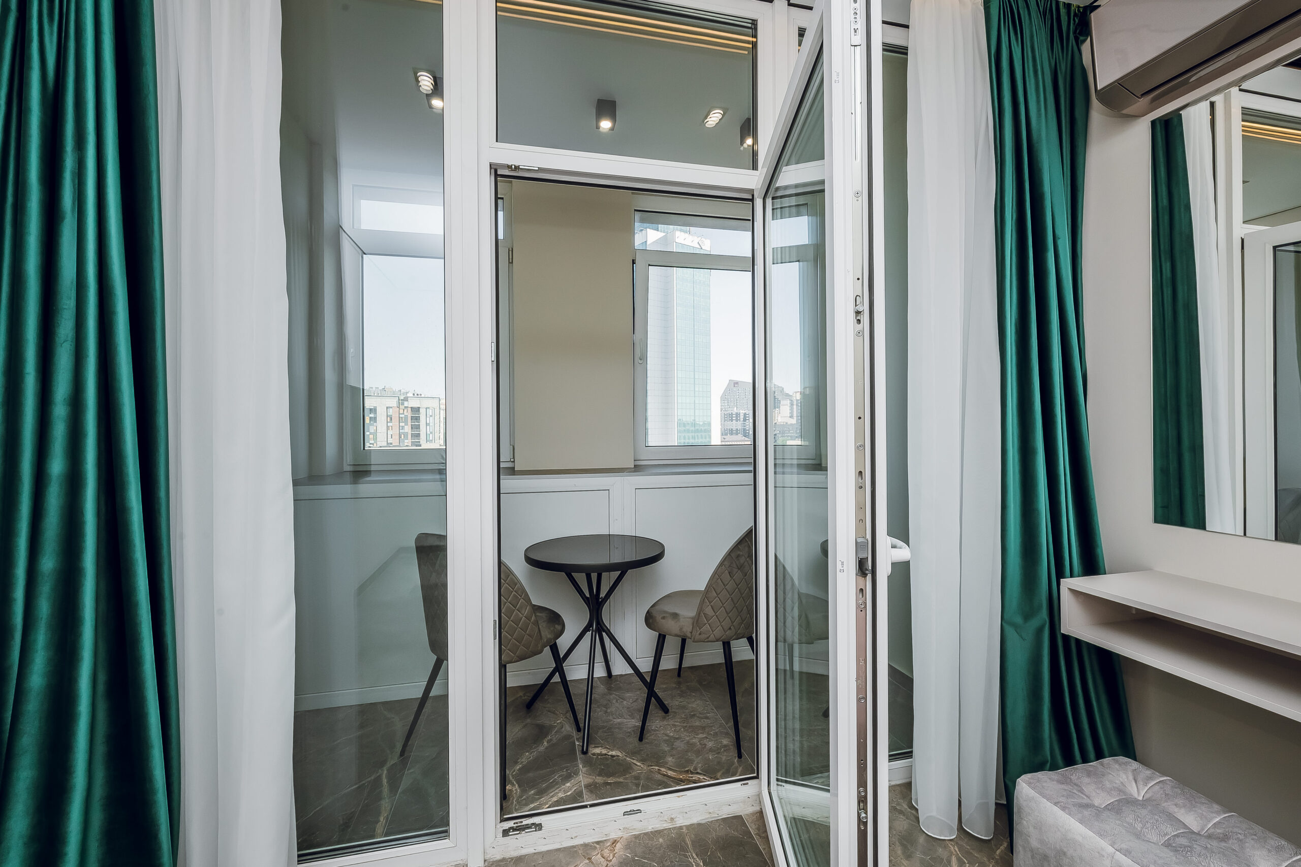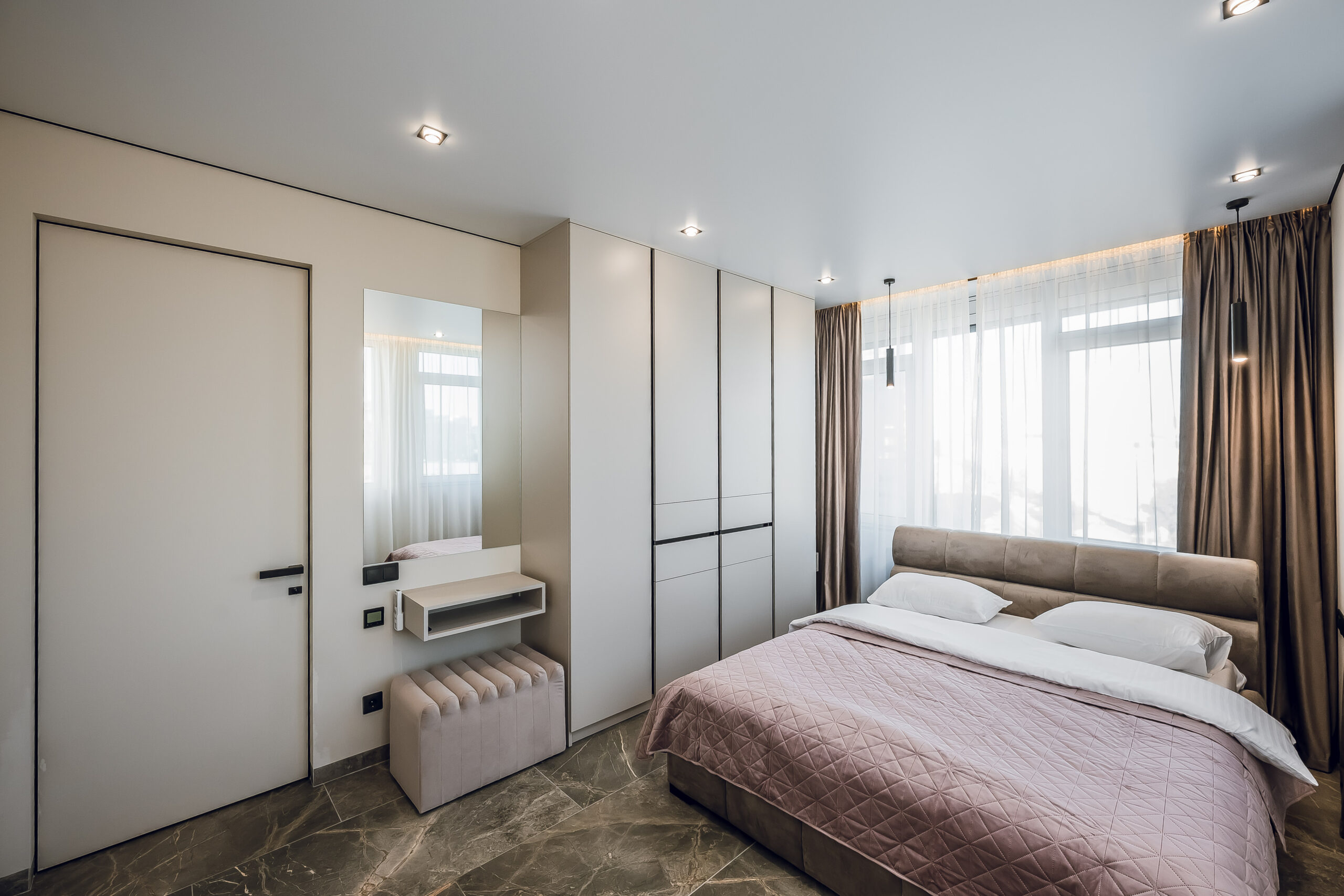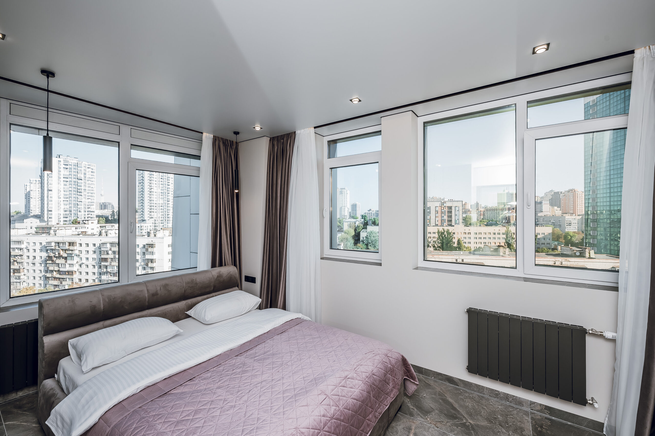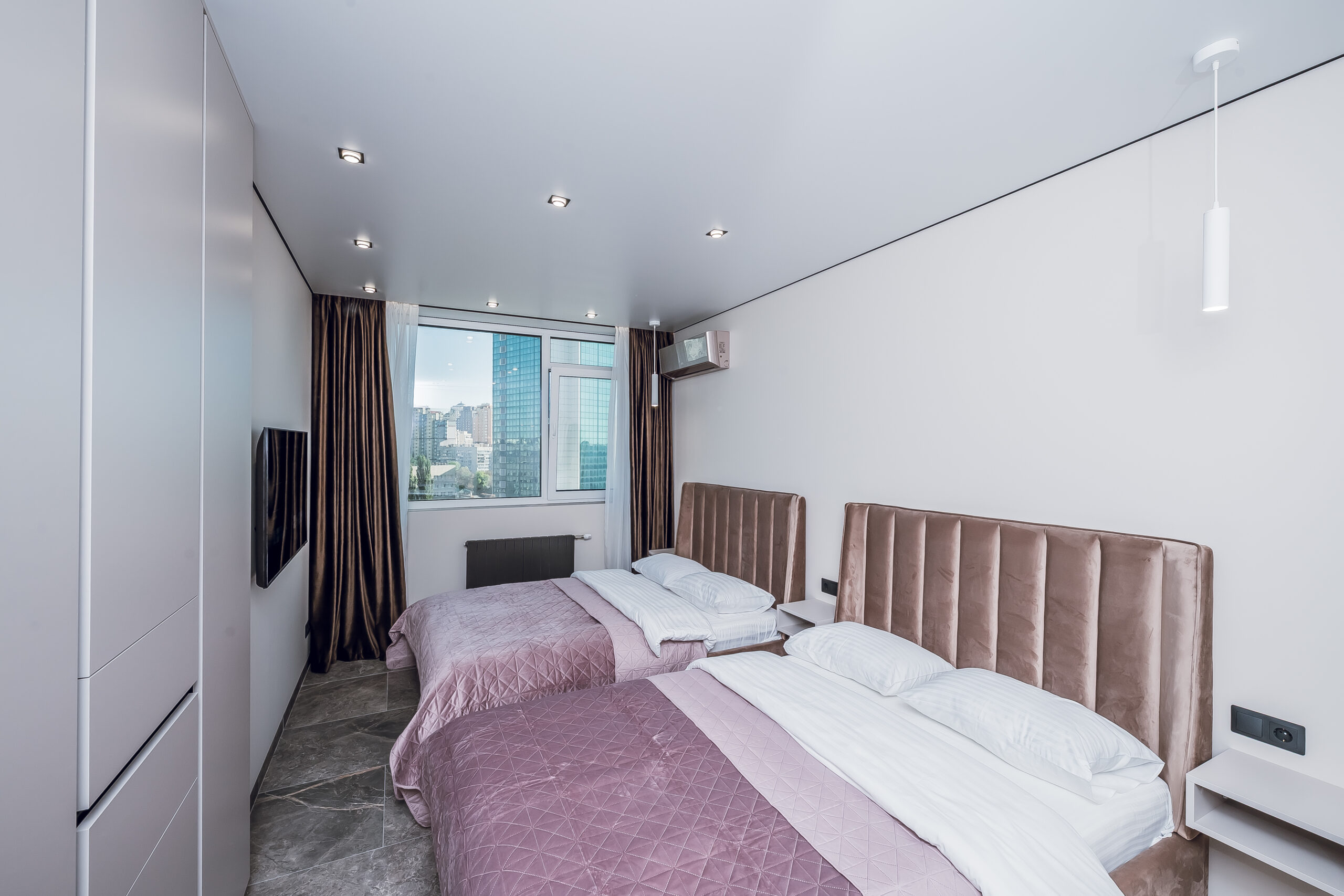 Квартира розташована на 13-му поверсі та має захопливий панорамний вид на Київ. Просторий інтер’єр виконаний у сучасному стилі з продуманим плануванням, що створює затишну та комфортну атмосферу. Квартира повністю оснащена всім необхідним для тривалого й зручного проживання.