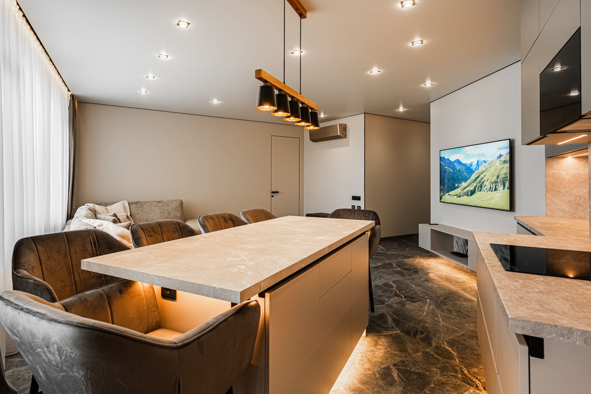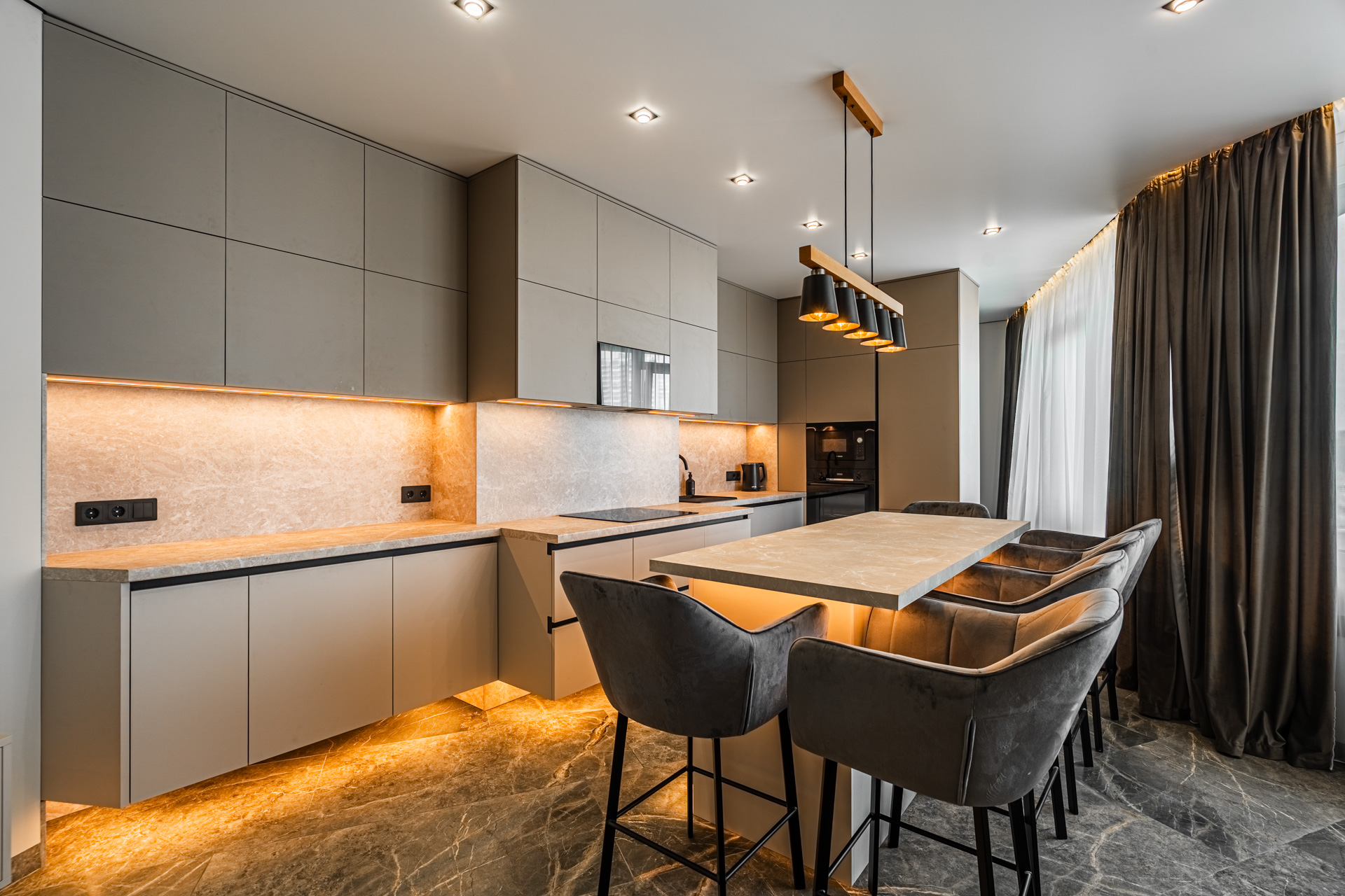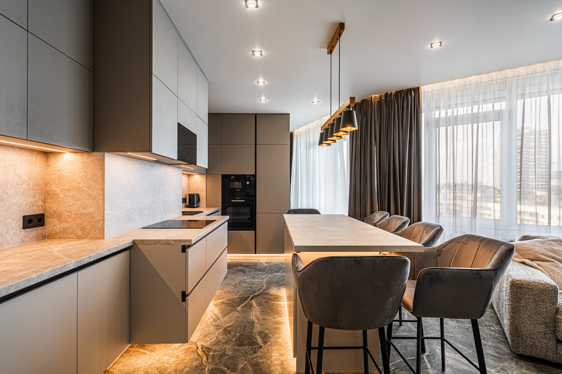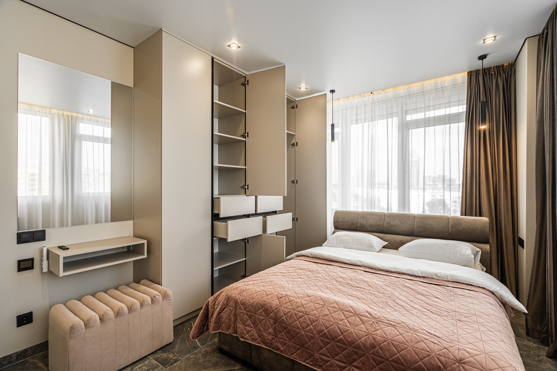 Квартира розташована на 13-му поверсі та має захопливий панорамний вид на Київ. Просторий інтер’єр виконаний у сучасному стилі з продуманим плануванням, що створює затишну та комфортну атмосферу. Квартира повністю оснащена всім необхідним для тривалого й зручного проживання.