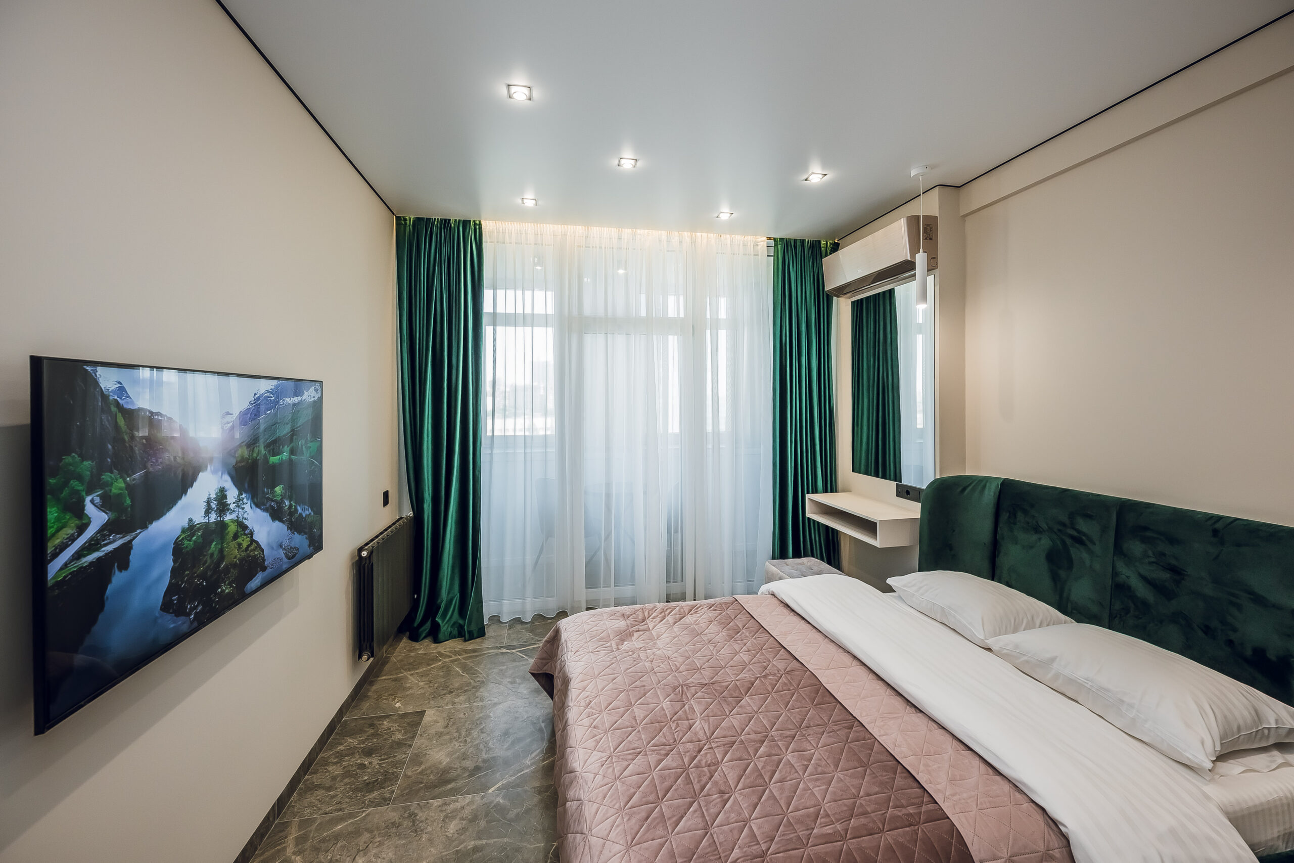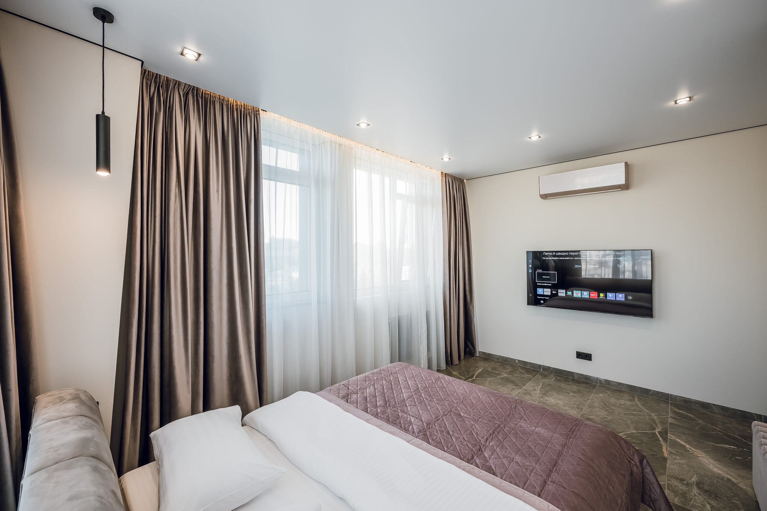 Спальня 1: зручне двоспальне ліжко (2000 × 1600 мм), кондиціонер, телевізор