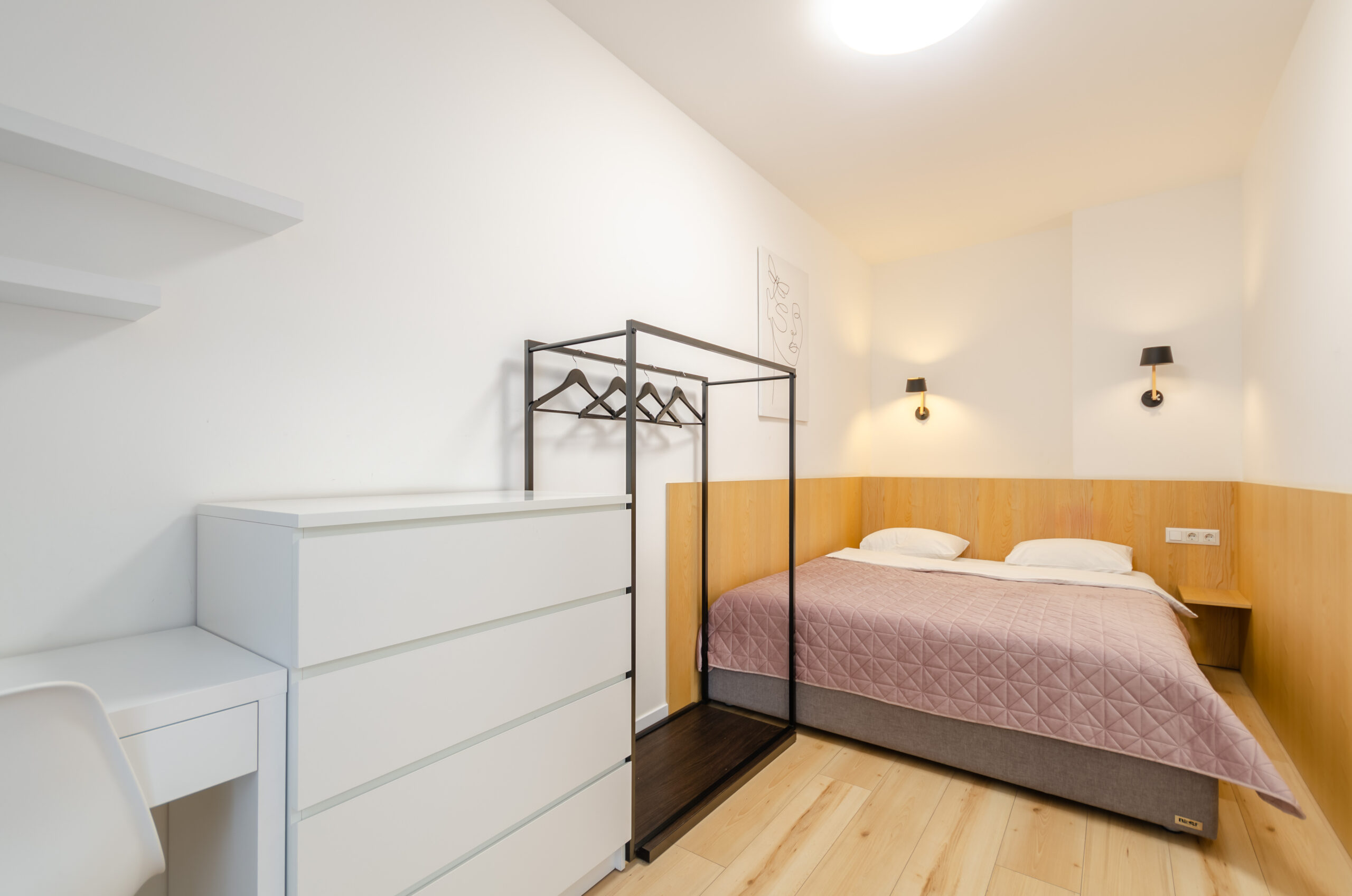 The apartment is on the 4th floor, with an area of 37m2, it has a separate bedroom, a bright living room, a kitchen and a bathroom. It is fully equipped with everything necessary for a comfortable stay (there is bedding, all the necessary dishes, household appliances)