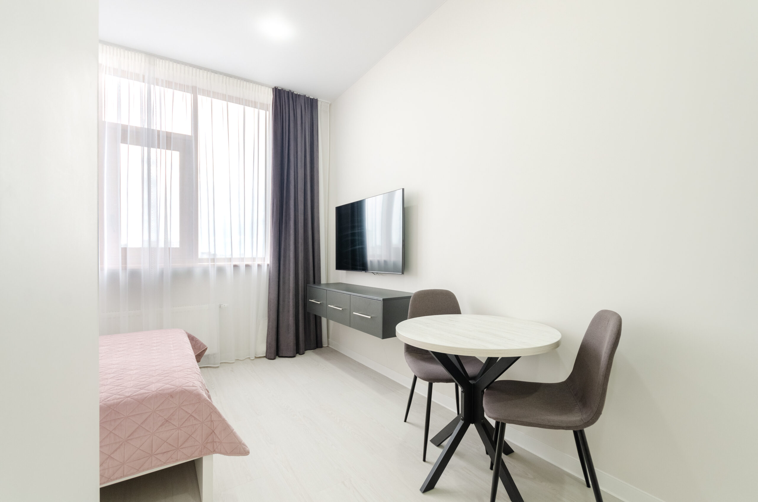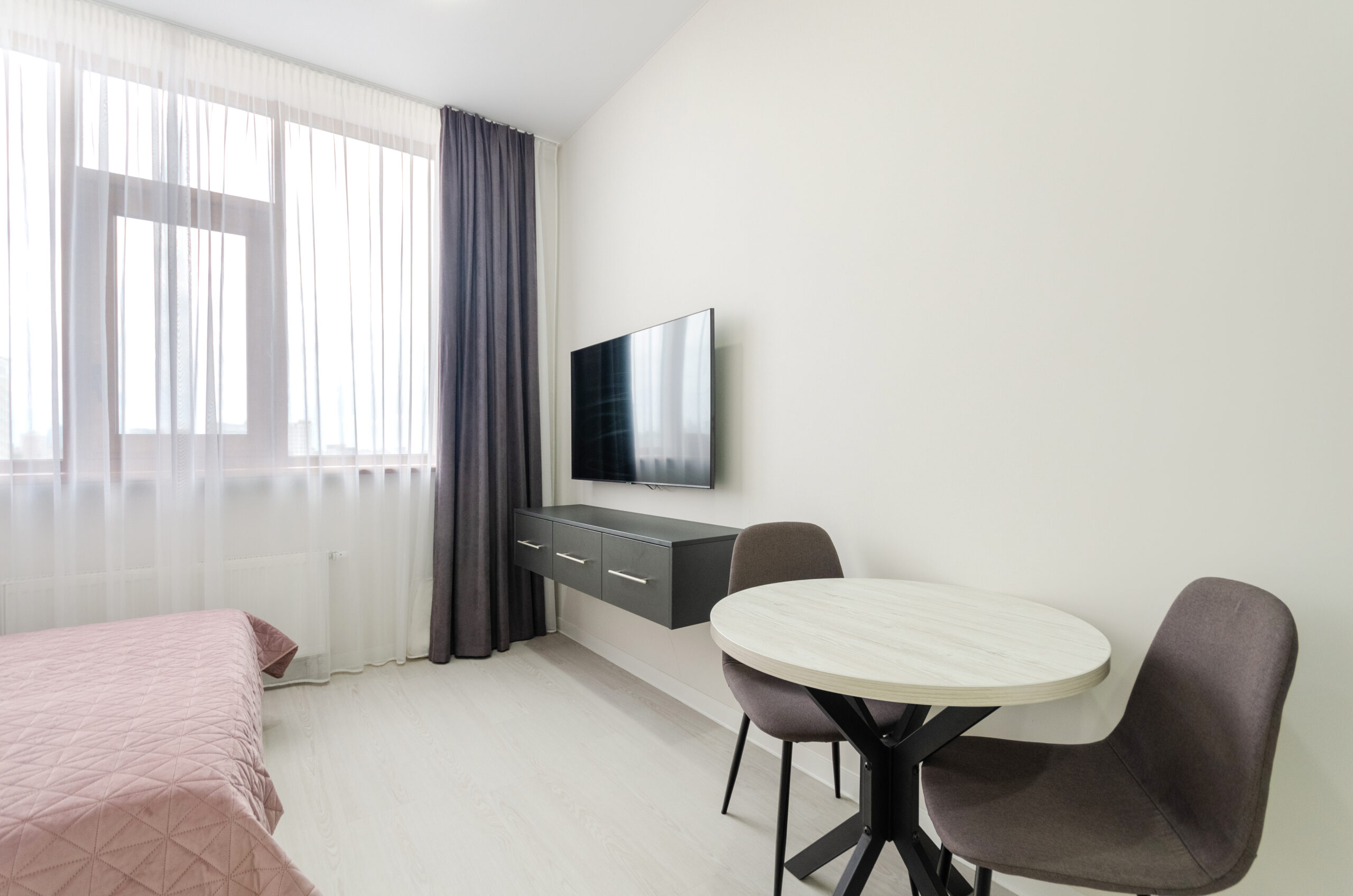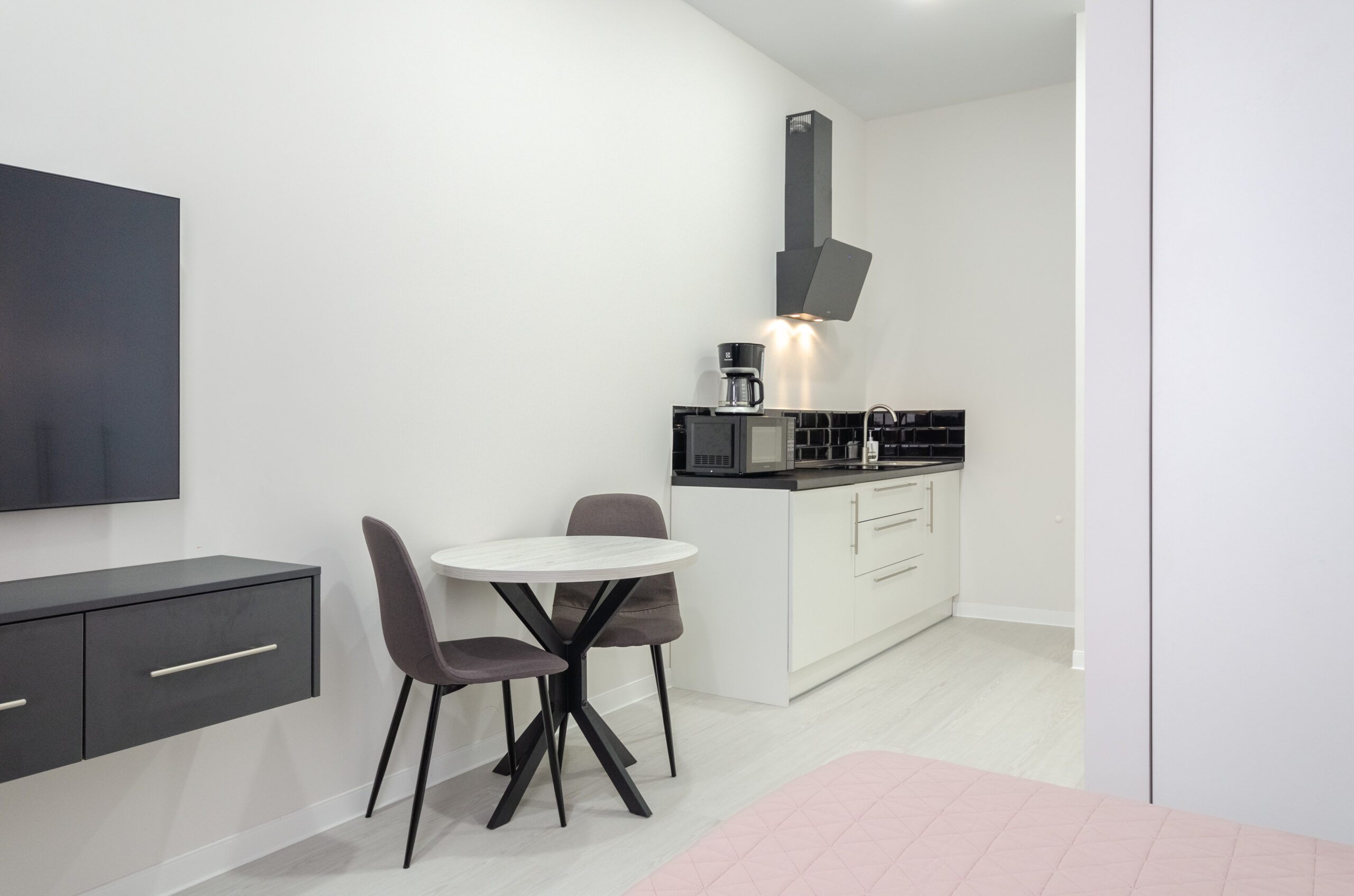 – living room (divided into zones, includes kitchen): bed 160*200 cm, flat screen TV, Smart-TV, air conditioner, kitchen (refrigerator, microwave oven, kettle, electric stove, oven, pots, pans, all necessary dishes, cups, glasses, glasses, dining table).