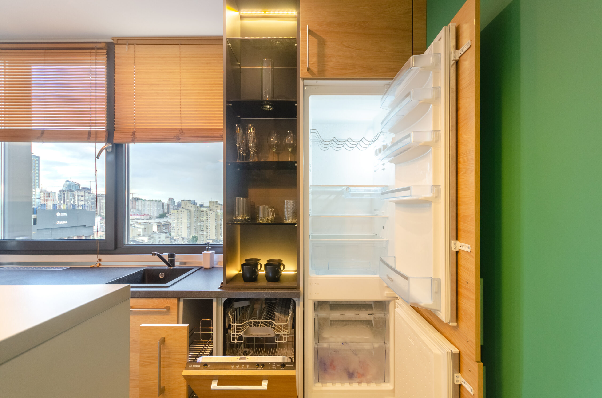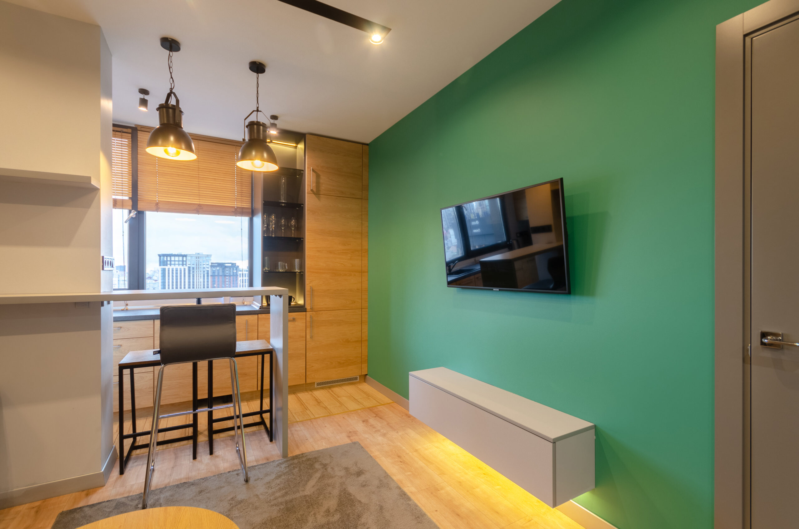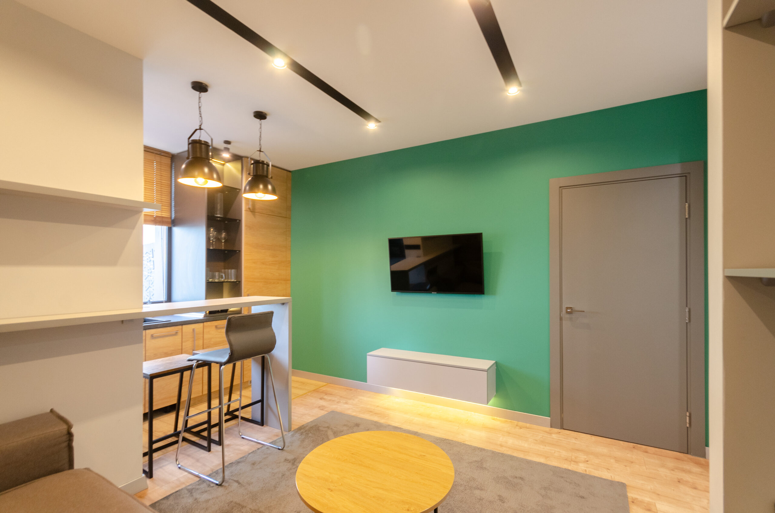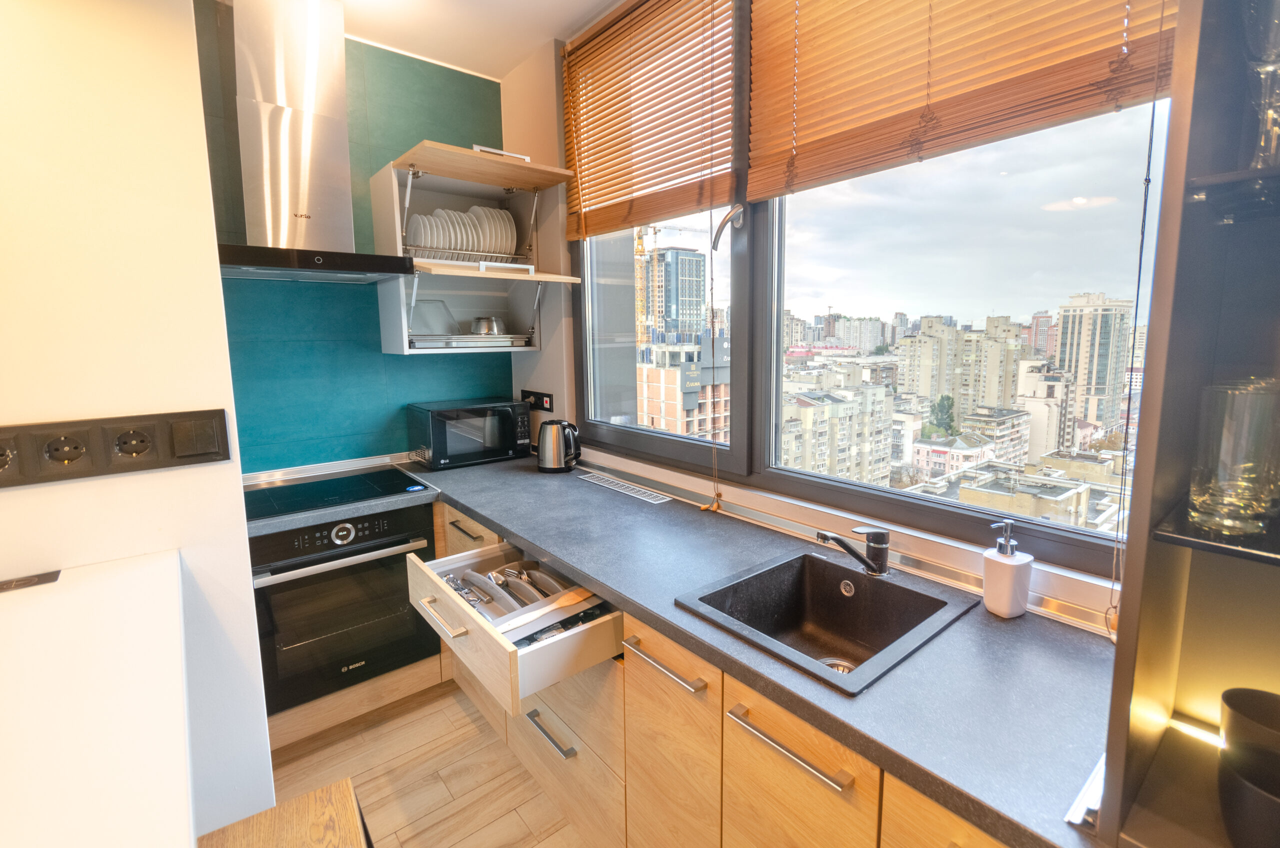 Excellent transport interchange, nearby metro stations Olimpiiska and Palace of Ukraine, nearby are restaurants, cafes, supermarkets, fitness clubs, shops, park for walking with children, sports and children’s playground, garden, school, gyms.