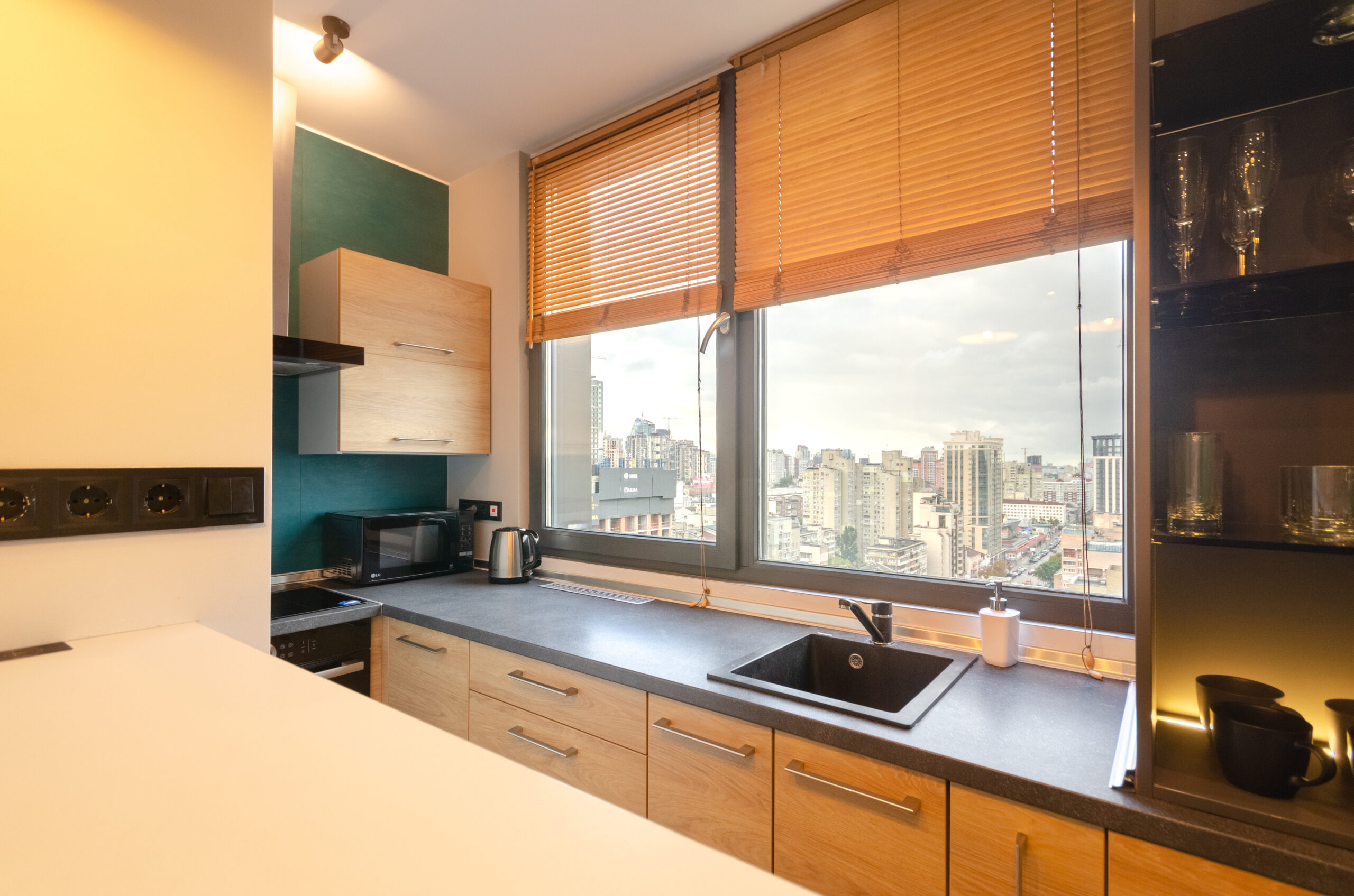 A stylish, modern apartment with a designer renovation is located in the city center in the New York Concept House residential complex. One of the best houses in Kyiv. The complex has round-the-clock security and video surveillance.
