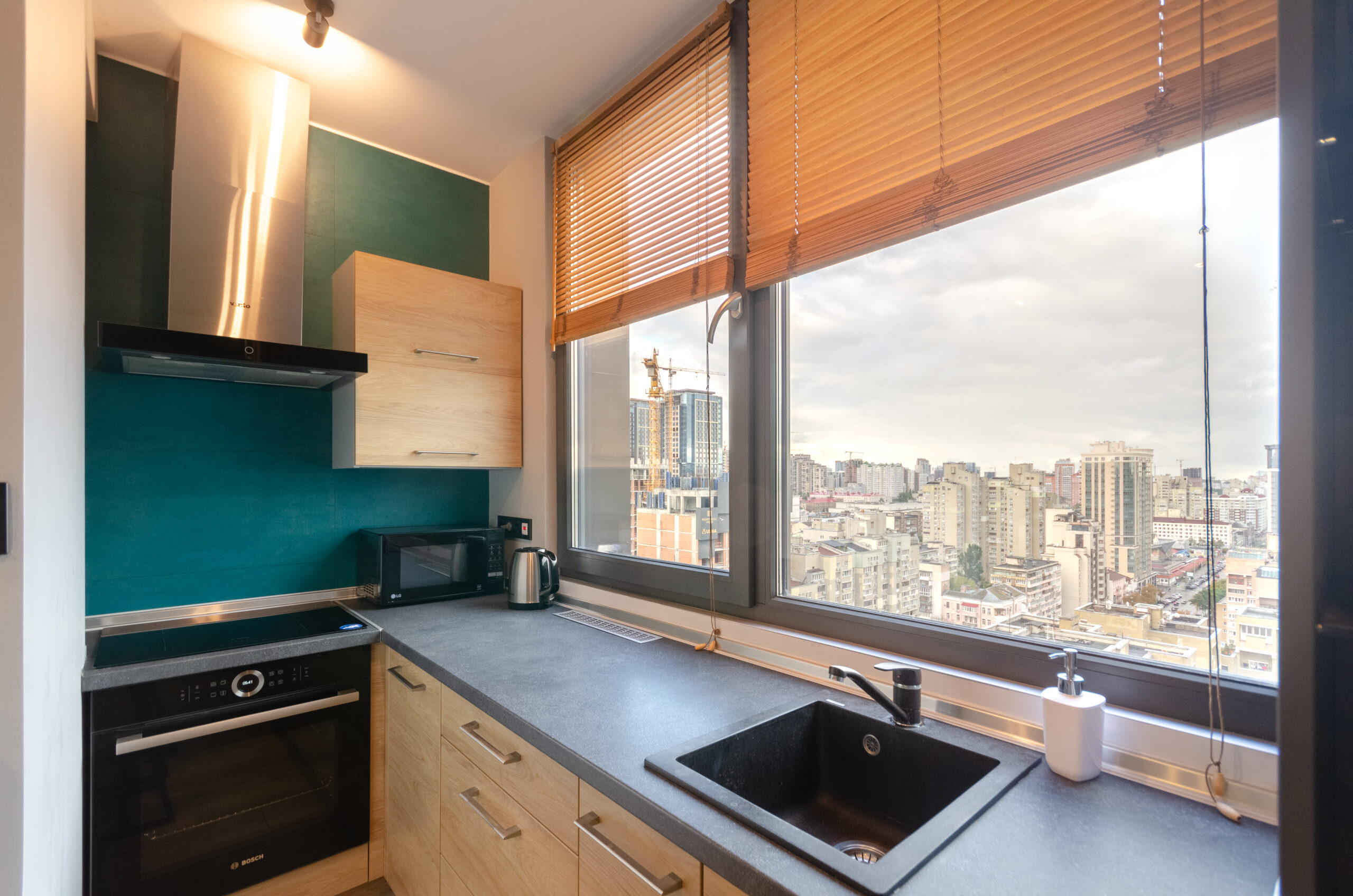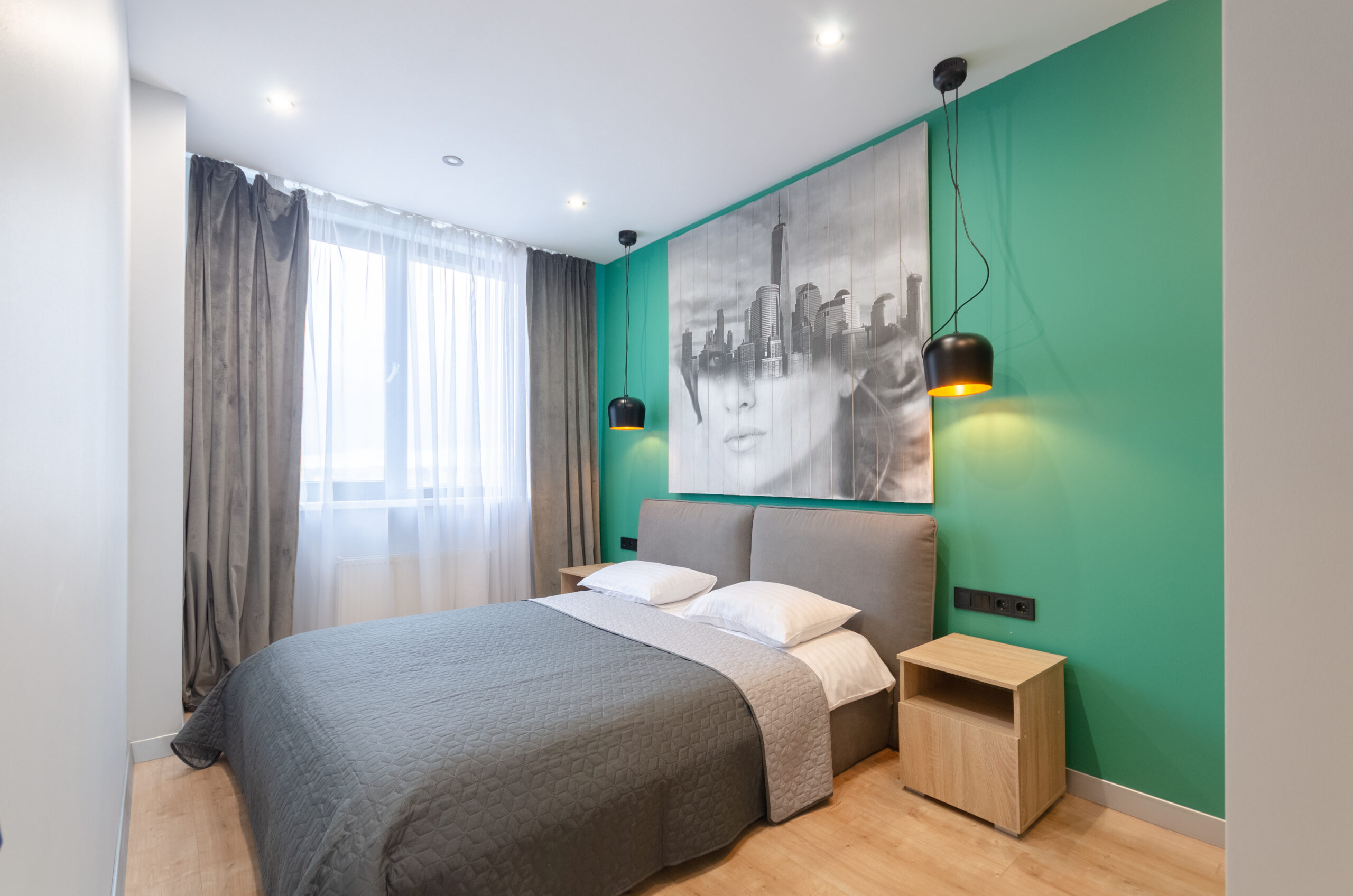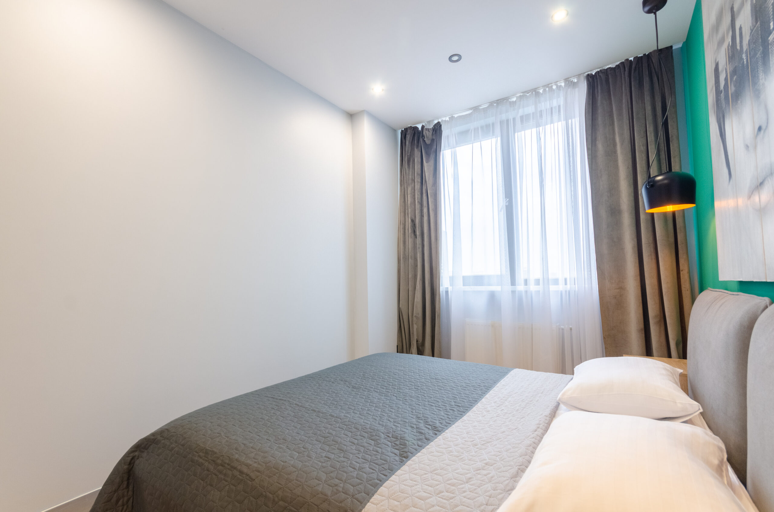 The apartment is located on the 20th floor, the total area is 45 m2, a living room with a kitchen, a separate bedroom and a bathroom. The apartment is equipped with everything necessary for a comfortable stay.