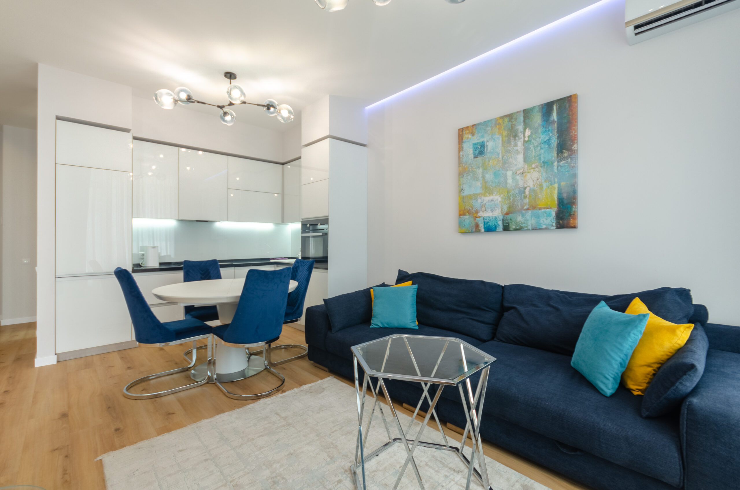 Cozy two-room apartment in “Tetris Hall” residential complex with modern renovation and functional layout. Apartment complex “Tetris Hall” with a unique facade architecture with lighting in 16 million shades of colors, an innovative autonomous heating system, a global “smart home” system and other ultra-modern technologies. 3-level underground parking.