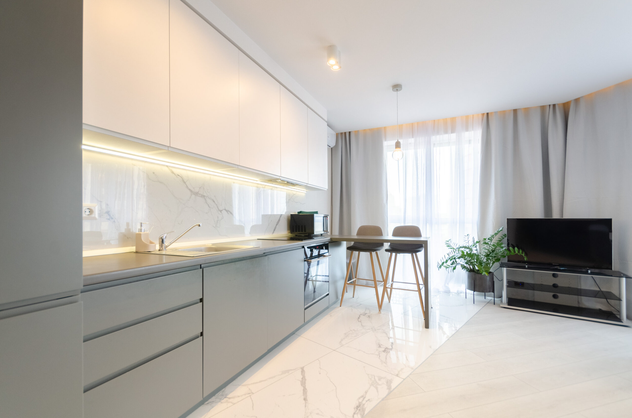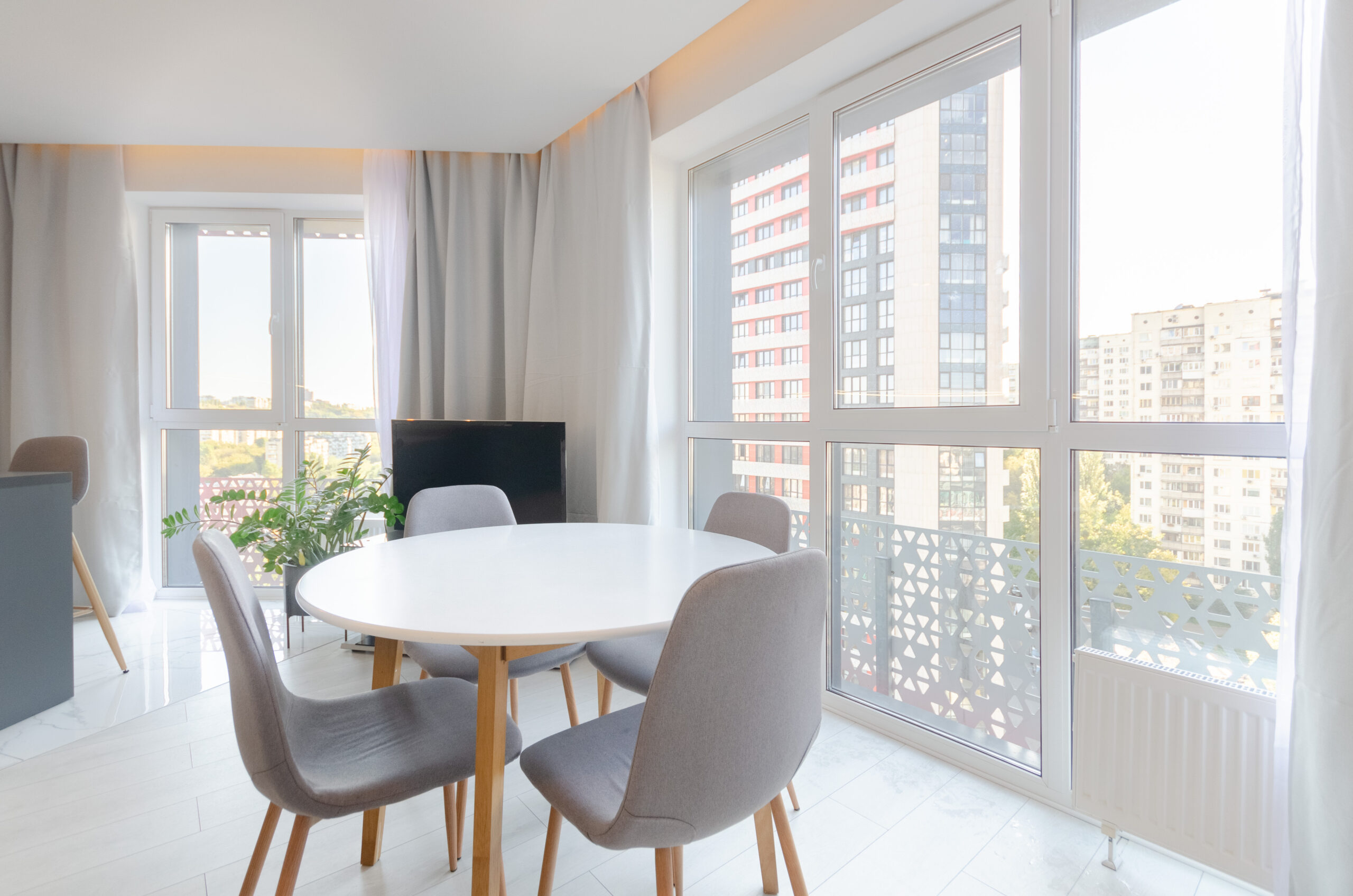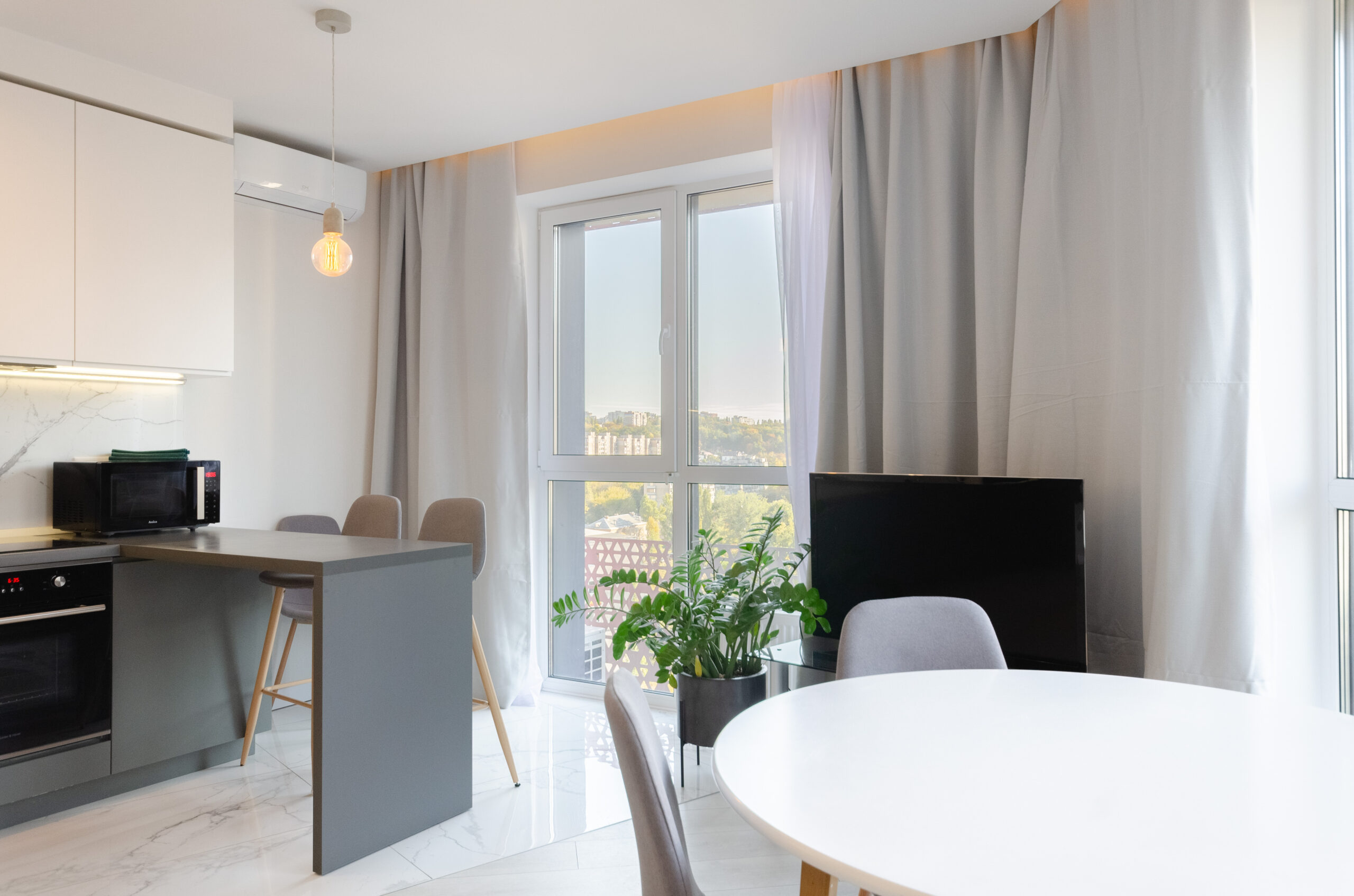 Cozy and modern design. A wonderful view of Kyiv from the window.