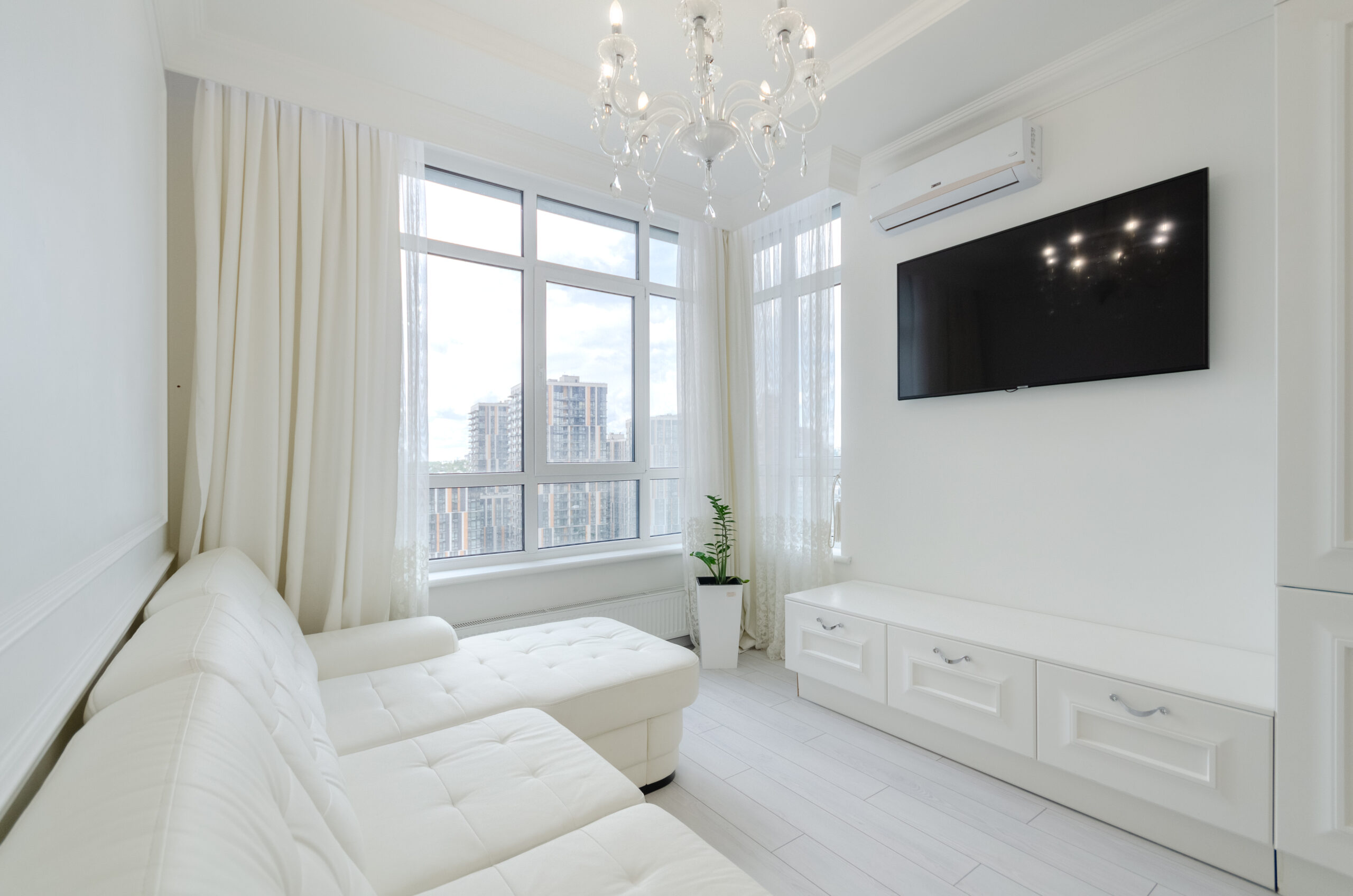 Brilliantly white apartment with a modern renovation and a view of Kyiv, located in the city center in the Central Park residential complex at 7 John McCain Street. A wonderful area, near the metro Lybidska, Palace of Ukraine, Pecherska, restaurants, fitness clubs, supermarkets Silpo, Novus, Auchan, shopping center Ocean Plaza, etc. are within walking distance. The complex has round-the-clock security. One of the best houses in Kyiv. There is an underground parking lot in the building, which can be used only as shelter.