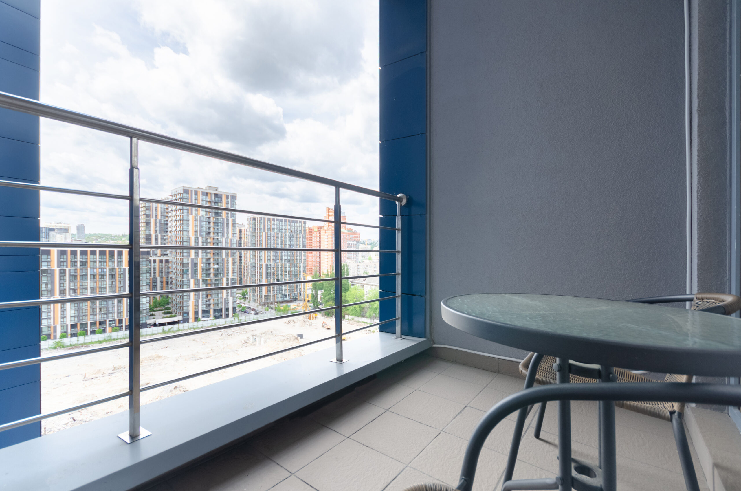 The apartment is located on the 10th floor, with an area of 50 m2, with a separate bedroom, a living room-kitchen, a bathroom, a balcony with a view of Kyiv.